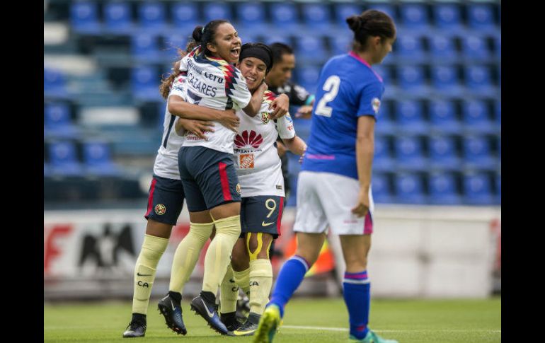 GUADALAJARA, JALISCO (04/AGO/2017).- El equipo femenil del América arrolló con un 5-0 a su similar de Cruz Azul en partido de la tercera jornada del torneo disputado en el estadio Azul de la capital del país.Las Águilas se pusieron pronto en la delantera, con un gol de Dayana Cázares al minuto tres. Lucero Cuevas anotó un triplete marcando en los minutos 19, 46 y 73 y Betzy Cuevas cerró la abultada cuenta al minuto 79.Con sus tres goles de esta tarde Lucero Cuevas suma cuatro tantos y se convierte en la líder goleadora del recién fundado torneo.La victoria coloca momentáneamente a las azulcremas a la cabeza del Grupo 1, en espera de los resultados del resto de la jornada.Se trata de la segunda derrota consecutiva para las cruzazulinas y el segundo triunfo al hilo para las americanistas, que en la jornada tres visitarán al Toluca.