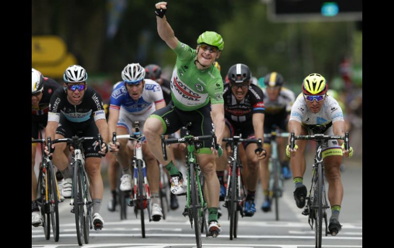 Deportes | El alemán suma su segundo triunfo al imponerse a Sagan y Cavendish Andre Greipel consigue la quinta etapa del Tour El alemán suma su segundo triunfo al imponerse a Sagan y Cavendish Por: EFE 8 de julio de 2015 - 10:32 hs El 'gorila de Rostock', de 32 años, sumó así su octavo triunfo en al Grande Boucle. EFE / K. Ludbrook AMIENS, FRANCIA (08/JUL/2015).- El alemán André Greipel sumó hoy su segundo triunfo de etapa en la presente edición del Tour de Francia, en la primera llegada agrupada, por delante del eslovaco Peter Sagan y del británico Mark Cavendish. La general no sufrió cambios, con el también alemán Tony Martin como maillot amarillo, con 12 segundos de ventaja sobre el británico Chris Froome y 25 frente al estadounidense Tejay van Garderen. Si hace tres días en la meta de Zelanda Greipel se impuso en un esprint muy reducido por la ausencia de algunos de los mejores llegadores del pelotón, sorprendidos en una caída, en esta ocasión ganó en Amiens con todos los tenores disputando la victoria. El alemán demostró ser el más fuerte de la edición, aunque su temporada no hacía presagiar que estaría tan fuerte en el Tour. El "gorila de Rostock", de 32 años, sumó así su octavo triunfo en al Grande Boucle, donde desde 2011 ha levantado los brazos al menos en una ocasión. En Amiens marcó perfectamente los tiempos para superar a sus rivales, en particular a un Sagan, que también fue segundo en Zelanda y que suma ya trece segundos puestos en sus tres participaciones en el Tour. La etapa se corrió con muchos nervios por miedo a los abanicos, ante las fuertes rachas de viento que soplaban en el recorrido. Una tensión que provocó una fuerte caída a 20 kilómetros para la meta en la que se vieron involucrados unos 30 corredores, entre ellos el francés Thibaut Pinot, tercero de la pasada edición, pero ninguno de los otros favoritos para la general. Etapa Pos. Nombre País Tiempo 1 André Greipel (ALE-Lotto Soudal) 4h 39:00 2 Peter Sagan (SVK-Tinkoff Saxo) mt 3 Mark Cavendish (GBR-Etixx Quick Step) mt 4 Alexander Kristoff (NOR-Katusha) mt 5 Edvald Boasson Hagen (NOR-MTN Qhubeka) mt 6 John Degenkolb (ALE-Giant Alpecin) mt 7 Arnaud Demare (FRA-FDJ.fr) mt 8 Bryan Coquard (FRA-Europcar) mt 9 Davide Cimolai (ITA-Lampre Mérida) mt 10 Greg Van Avermaet (BEL-BMC) mt Temas Ciclismo Tour de Francia 2015 Lee También Isaac Del Toro gana... ahora en el Gran Piemonte 2025 Isaac del Toro gana otra vez, ahora el Giro dell'Emilia 2025 ¿Actriz que donó un riñón a Selena Gomez, fue invitada a su boda? Isaac del Toro destaca en el Campeonato Mundial de Ciclismo de Ruta Recibe las últimas noticias en tu e-mail Todo lo que necesitas saber para comenzar tu día Registrarse implica aceptar los Términos y Condiciones