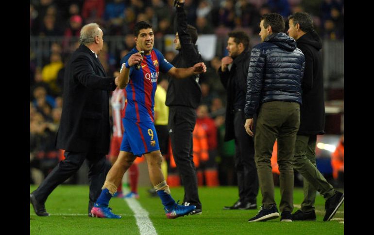 BARCELONA, ESPAÑA (08/FEB/2017).- El delantero del Barcelona Luis Suárez no quiso marcharse a los vestuarios tras ser expulsado en el minuto 90 del partido de vuelta de las semifinales de la Copa del Rey, según denunció en el acta el árbitro del encuentro, Gil Manzano.El colegiado extremeño hace constar en el apartado de 'Otras incidencias' que el punta uruguayo, "una vez expulsado, retrasó su salida del terreno de juego de manera considerable", haciendo "caso omiso" a sus instrucciones y que se quedó junto al banquillo viendo el final del encuentro."Una vez fuera del terreno de juego, permaneció en las escaleras de acceso al túnel de vestuarios observando el partido hasta que éste finalizó, a pesar de que el cuarto árbitro comunicó en reiteradas ocasiones de que debía marcharse a los vestuarios, haciendo nuevamente caso omiso a estas instrucciones", añade en el acta.El Barça recurrirá la segunda tarjeta amarilla de Suárez, por un supuesto codazo a Koke, ya que su expulsión le impediría disputar la final.El charrúa, a la conclusión del partido, quiso dejar claro que no golpeó, en absoluto, al jugador del Atlético: "Ni siquiera ha sido falta. Solo me he girado y parecía que el defensa era lo que quería".Suárez, indignado, prosiguió con un discurso que no le beneficiará a la hora de obtener una resolución favorable cuando el club azulgrana recurra su sanción. "Me río de la expulsión" y "ya sabemos cómo funciona esto", comentó antes de marcharse a la ducha.