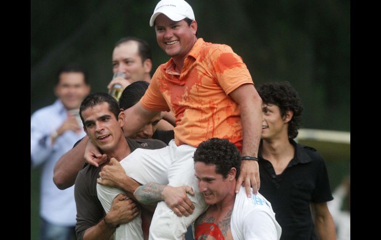 Deportes | Se mantuvo en la cima durante las tres rondas Arce se queda con el título Logró un total de 214 golpes, 10 de ventaja sobre Martín Carranza y David Ibarra Por: EL INFORMADOR 25 de julio de 2010 - 02:15 hs Jonathan Arce es levantado en hombros luego de ganar el Anual del Atlas. A. CAMACHO / ZAPOPAN, JALISCO (25/JUL/2010).- Luego de tres rondas marcando la pauta entre los mandones, el golfista Jonathan Arce se quedó finalmente con el título del LXI Torneo Anual de Golf del Atlas al finalizar su participación con un acumulado de 214 golpes. Arce se agenció el triunfo tras concluir la tercera ronda con 71 impactos, que sumados a los 71 y 72 de sus rondas anteriores lo colocaron como el mejor con una ventaja de 10 golpes sobre sus más cercanos perseguidores, Martín Carranza y David Ibarra de la Torre. Carranza e Ibarra finalizaron empatados con 224 golpes, pero en el criterio de desempate el primero de ellos se adjudicó el segundo puesto dejando a Ibarra en la tercera posición. En la categoría AA el ganador fue José Espinoza con 225 impactos, mientras que en la categoría A Alberto Sánchez fue el triunfador con 237, tras imponerse en el desempate a Sergio Báez, quien finalizó con la misma cantidad de impactos. Temas Atlas Golf Atlas Country Club Recibe las últimas noticias en tu e-mail Todo lo que necesitas saber para comenzar tu día Registrarse implica aceptar los Términos y Condiciones