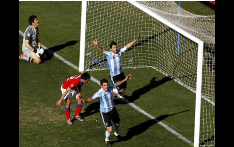 Deportes | Gonzalo Higuaín mete tres goles en el partido Argentina golea y casi califica El cuadro albiceleste vence 4-1 a Corea del Sur y con ello estaría amarrando su boleto a octavos de final del Mundial Por: EL INFORMADOR 17 de junio de 2010 - 07:19 hs La Selección de Argentina festeja su espectacular encuentro ante Corea del Sur. AFP / LEA EL MINUTO A MINUTO DE ESTE PARTIDO JOHANNESBURGO, SUDÁFRICA (17/JUNIO/2010).-Gonzalo Higuaín estuvo fenomenal con tres goles y Lionel Messi fue su socio ideal. Con esa receta, Argentina goleó el jueves 4-1 a Corea del Norte y quedó acariciando la clasificación a los octavos de final de la Copa Mundial. Un gol en contra de Park Chu-young a los 17 minutos abrió el camino para la victoria Argentina que selló Higuaín a los 33, 76 y 80 por el Grupo B, en el que más tarde se enfrentaban Grecia y Nigeria. Messi intervino en todas las jugadas de gol. Argentina quedó como líder con seis puntos, mientras que Corea del Norte se suma tres. En la apertura de las acciones el sábado, Argentina derrotó 1-0 a Nigeria y los asiáticos 2-0 a los europeos. Tras un comienzo vacilante, en el que tenía la pelota pero no concretaba, Argentina se fue haciendo dueña del partido con un esquema claro: Carlos Tevez e Higuaín como arietes de punta, con Messi parado metros atrás y Angel Di María y Maxi Rodríguez empujando por las bandas. Pero más allá de sus ímpetus ofensivos, Argentina encontró el gol con una pelota parada: Messi lanzó un tiro libre desde la izquierda, la pelota pegó en Park Chu-young y se metió en el arco. Tocados por este gol, los surcoreanos se hicieron notar poco después cuando Lee Chung-young remató casi pisando el área grande y la pelota se fue por arriba. Los nervios argentinos se alteraron luego cuando en una jugada intrascendente su defensor Walter Samuel dejó la cancha por una molestia en el muslo de la pierna izquierda. Fue reemplazado por Nicolás Burdisso, sin que se alterase el esquema táctico en la retaguardia. Pasada la media hora, Argentina metió el segundo con otra jugada que se inició con pelota parada: Messi ejecutó un tiro libre corto para Rodríguez, el volante del Liverpool manda el centro, Burdisso la peinó hacia atrás e Higuaín se llenó la boca de gol. Cerca del final del primer tiempo, apareció el, genio de Messi cuando dejó a un par de defensores como poste y su toque suave de derecha se fue lamiendo un palo. Ante la desorientación surcoreana, parecía que Argentina tenía la goleada servida en bandeja pero le perdonó la vida. En el minuto adicional, Li Chung-yong capitalizó un grosero error de Demichelis, quien hizo la siesta con la pelota, el surcoreano se la robó definió ante la salida de Sergio Romero y la mirada de desconsuelo de Jonás Gutiérrez. El ``Galgo'' Gutiérrez, quien no pudo auxiliar a su compañero, recibió en esta etapa su segunda amonestación por lo que no podrá jugar en el próximo partido ante Grecia. Lejos de amilanarse por este error, Argentina salió con todo en el complemento e Higuaín se perdió el tercero con un bombazo que tapó el arquero. El dominio argentino se hizo absoluto, aunque a los 58 Corea del Sur hilvanó su primer contragolpe punzante y casi empata. El disparo de Ki Sun-gyueng, no obstante, salió desviado. Argentina prosiguió enhebrando buenas maniobras ofensivas, la más lujosa de ellas que derivó en el tercero cuando Higuaín empujó a la red después una buena jugada entre Messi y Sergio Agüero. La ``Pulga'' definió de zurda, el tiro dio en el palo y el delantero el Real Madrid amplió la cuenta. La fiesta para Argentina fue total cuando nuevamente Higuaín la clavó en la red: gran pase de Messi para Agüero que de primera habilitó al ``Pipita'', quien de cabeza metió el cuarto de Argentina y el tercero de su cosecha personal. Alineaciones: Argentina: Romero; Jonás Gutiérrez, Martín Demichelis, Walter Samuel (Nicolás Burdisso, m.23), Gabriel Heinze; Javier Mascherano, Maxi Rodríguez, Ángel Di María; Lionel Messi, Carlos Tévez (Sergio Agüero, m.75), Gonzalo Higuaín (Mario Bolatti, m.83). Corea del Sur: Jung Sung-ryong; Oh Beom Seok, Cho Yong Hyung, Lee Jung Soo, Lee Young Pyo; Ki Sung Yueng (Kim Nam Il, m.46), Kim Jung Woo; Lee Chung Yong, Park Ji Sung, Yeom Ki Hun; Park Chu Young (Lee Dong Gook, m.81). Árbitro: Frank de Bleeckere (BEL), amonestó a los surcoreanos Yeom Ki Hun y Lee Chung Yong y a los argentinos Jonás Gutiérrez, Javier Mascherano y Gabriel Heinze. Partido de la primera fase del Mundial de Sudáfrica disputado en el Soccer City de Johannesburgo ante 82 mil 174 espectadores. Temas FIFA Mundial de Sudáfrica 2010 Selección de Argentina Selección de Corea del Sur Recibe las últimas noticias en tu e-mail Todo lo que necesitas saber para comenzar tu día Registrarse implica aceptar los Términos y Condiciones