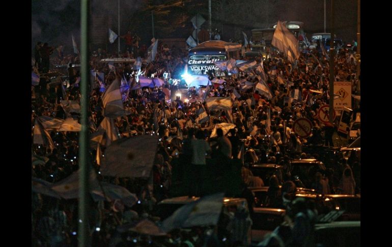 Deportes | Sigue en duda si el técnico Diego Armando Maradona seguirá con el equipo Argentina recibe a Maradona y a su Selección Los albicelestes fueron recibidos por miles de aficionados, luego de ser eliminados del Mundial por Alemania Por: EFE 4 de julio de 2010 - 17:42 hs Miles de personas brindaron hoy un caluroso recibimiento a la Selección argentina. AFP / BUENOS AIRES, ARGENTINA (04/JUL/2010).- Miles de personas brindaron hoy un caluroso recibimiento a la Selección argentina de futbol a su regreso a Buenos Aires encabezada por el seleccionador nacional, Diego Armando Maradona, cuyo futuro está en duda tras la contundente derrota sufrida frente a Alemania en el Mundial. El equipo, que llegó al aeropuerto internacional de Ezeiza en un vuelo regular procedente de Pretoria, fue trasladado desde las pistas en un autobús con escolta policial al recinto de la Asociación de Futbol Argentina (AFA), donde se concentraron miles de seguidores para saludar a los jugadores. La Selección fue recibida en las proximidades de la AFA con gritos de "Argentina", "Aguante Diego" y "No se va, el Diego no se va" por varios miles de aficionados, en su mayoría vestidos con la camiseta de la selección y portando banderas argentinas, tambores y carteles con lemas en apoyo de Maradona. En el interior del autobús, que a duras penas logró avanzar entre la multitud, un Maradona visiblemente emocionado lanzó besos a sus admiradores con una sonrisa de incredulidad y agradecimiento que también se reflejó en los rostros de varios de los jugadores quienes, sorprendidos por este recibimiento, se pegaron a las ventanillas para saludar y tomar fotografías de los hinchas. "Lamentablemente la goleada nos la comemos, pero hay que apoyar a Diego y a la Selección", apuntaba un aficionado que aguardó durante horas la llegada del equipo. "Esto no es un fracaso, es un traspié. No tuvimos suerte, pero hay que seguir con Diego", le secundó otro seguidor de la Albiceleste. La derrota frente a Alemania ha puesto en duda la continuidad de Maradona al frente de la selección después de que el propio seleccionador abriera la puerta a su renuncia al afirmar que "no tiene fuerzas para nada" y que debe "pensar bien" su decisión. La prensa argentina dedicó hoy amplios espacios a las especulaciones sobre su futuro, mientras sus admiradores inundaron páginas en la red con mensajes de respaldo. El presidente de la AFA, Julio Grondona, pidió a Maradona que dirija a la selección en el amistoso de agosto próximo ante Irlanda, en Dublín. "No tanto llanto que el 11 de agosto tienes que dirigir un amistoso en Dublín", le habría dicho el titular de la AFA según medios locales. De acuerdo con la agencia oficial Telam, la petición se limitó al partido frente Irlanda pero si el técnico decide retirarse, no habrá intentos de convencerlo. El proyecto inicial de Grondona y de Maradona era mantener al cuerpo técnico hasta la Copa América de 2011, que se realizará en Argentina. "No es el momento para evaluar. La derrota todavía está muy fresca. El tema se evaluará en los próximos días. Seguramente el mismo Diego querrá tomarse un tiempo para pensar en el futuro", declaró Grondona al diario La Nación. El preparador físico del equipo, Fernando Signorini, aseguró desde Pretoria que "la decisión está en manos de Diego", quien a su juicio "tendrá que hacer un balance y decidir cuál es la mejor opción". "Lo cierto es que nadie sabe qué va a pasar con este Maradona derrotado y dolido. Del imprevisible Diego depende, como cuando jugaba", apuntó el diario Clarín, que como el resto de los rotativos informa de que al término del encuentro con Alemania le habría dicho a su mano derecha, Alejandro Mancuso, que no tiene ganas de seguir. Varios referentes del mundo de la política y la cultura han manifestado el apoyo al equipo y en particular a Maradona a través de redes sociales. "Quédate, yo te banco a muerte", escribió anoche el jefe de Gabinete del gobierno argentino, Aníbal Fernández. Más del 68 por ciento de los participantes en una encuesta realizada en la red por el diario Clarín, en la que opinaron unas 15 mil personas, se pronunciaron a favor de la continuidad de Maradona. Además, el Mundial puede suponer el final de un ciclo para algunos de los jugadores de la Selección, como Juan Sebastián Verón -molesto con el entrenador porque no le dio juego en el Mundial- y Martín Palermo, mientras que el fracaso no impedirá, probablemente, que estrellas como Lionel Messi, que celebró en Sudáfrica su 23 cumpleaños, puedan desquitarse en la cita de dentro de cuatro años. Temas FIFA Diego Armando Maradona Mundial de Sudáfrica 2010 Selección de Argentina Lee También Rafael Márquez elogia la Academia AGA Así se prepara el Estadio AKRON para el regreso del Tricolor a Guadalajara El Tricolor entrenó en Guadalajara tras la humillación ante Colombia México Sub-20 regresa al país tras eliminación ante Argentina Recibe las últimas noticias en tu e-mail Todo lo que necesitas saber para comenzar tu día Registrarse implica aceptar los Términos y Condiciones