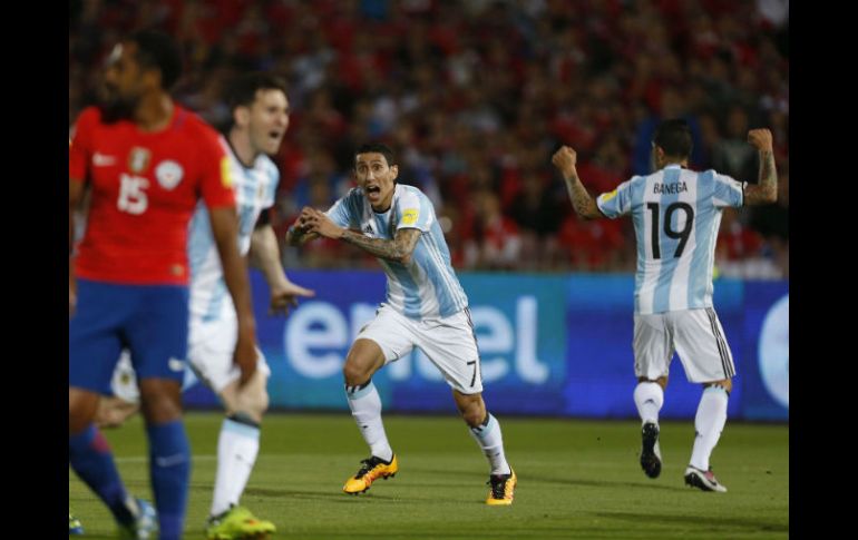 Deportes | Ángel Di María y Gabriel Mercado fijaron la remontada del Albiceleste en Santiago Argentina vence a Chile en debut de Pizzi Ángel Di María y Gabriel Mercado fijaron la remontada del Albiceleste en Santiago Por: EFE 24 de marzo de 2016 - 19:05 hs Di María igualó a los 19 minutos y Mercado silenció el estadio Nacional a los 24. AP / L. Hidalgo SANTIAGO, CHILE (24/MAR/2016).- Un gol de Felipe Gutiérrez a los 10 minutos parecía transformar en fiesta del debut de Juan Antonio Pizzi como seleccionador chileno, pero Ángel Di María y Gabriel Mercado fijaron la remontada de Argentina por 1-2 en Santiago en la quinta fecha de las eliminatorias del Mundial de Rusia. Di María igualó a los 19 minutos y Mercado silenció el estadio Nacional a los 24. Con el resultado, la Roja quedó sembrada con siete puntos de quince posibles y Argentina llegó a ocho. La sexta jornada de las eliminatorias, que transcurrirá el 29 de marzo, llevará a Chile a territorio venezolano en tanto que Argentina esperará a Bolivia. Temas Futbol Internacional Eliminatoria mundialista Selección de Argentina Selección de Chile Mundial de Rusia 2018 Lee También ¿Dónde ver EN VIVO el partido de J14 Pumas vs San Luis? ¿Dónde ver EN VIVO el partido de J14 Xolos vs Toluca? ¿Dónde ver EN VIVO el partido de J14 Atlas vs León? ¿Dónde ver EN VIVO el partido de J14 Querétaro vs Chivas? Recibe las últimas noticias en tu e-mail Todo lo que necesitas saber para comenzar tu día Registrarse implica aceptar los Términos y Condiciones
