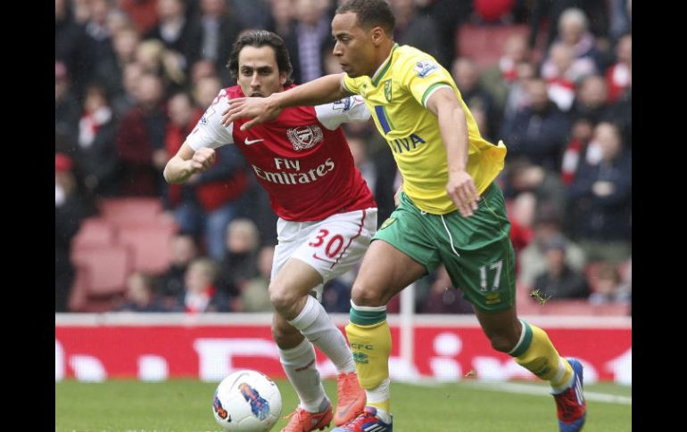 Deportes | Steve Morison anotó a los 85 minutos para empatar por Norwich Arsenal empata 3-3 con Norwich El delantero holandés empató el récord del equipo de Thierry Henry al llegar a 30 dianas en la temporada Por: EFE 5 de mayo de 2012 - 08:49 hs Francis Coquelin (d), del Arsenal, lucha por el balón con Simeon Jackson (i), del Norwich City. EFE / LONDRES, INGLATERRA (05/MAY/2012).- El tercer lugar de Arsenal en la liga Premier corre peligro después de su empate del sábado 3-3 contra Norwich, en el partido 900 de Arsene Wenger como técnico del club del norte de Londres. Steve Morison anotó a los 85 minutos para empatar por Norwich. Arsenal quedó con apenas dos puntos de ventaja sobre Tottenham y Newcastle, sus dos rivales en la lucha por el tercer puesto que juegan el domingo. Robin van Persie parecía haber conseguido una importante remontada para Arsenal, al lograr un doblete para poner a los Gunners en ventaja de 3-2. El delantero holandés empató el récord del equipo de Thierry Henry al llegar a 30 dianas en la temporada. Yossi Benayoun abrió la cuenta por Arsenal a los dos minutos, pero Norwich le dio vuelta al marcador antes del entretiempo con tantos de Wes Hoolahan y Gran Holt. Norwich trepó al 13er puesto en la liga Premier. Temas Futbol Internacional Champions League Arsenal Lee También México busca frenar el paso perfecto de Argentina en Mundial Sub-20 Lista actualizada de selecciones que ya clasificaron al Mundial 2026 Mundial 2026 traerá derrama millonaria al país ¿Dónde ver EN VIVO el partido amistoso México vs Colombia? Recibe las últimas noticias en tu e-mail Todo lo que necesitas saber para comenzar tu día Registrarse implica aceptar los Términos y Condiciones