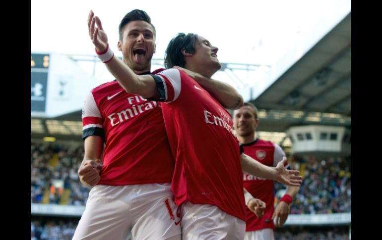 Deportes | Los Gunners vencen por 1-0 a Tottenham con tanto de Tomas Rosicky Arsenal gana y presiona a Chelsea Los Gunners vencen por 1-0 a Tottenham con tanto de Tomas Rosicky Por: NTX 16 de marzo de 2014 - 12:50 hs El equipo de Arsene Wenger sigue peleando los primeros puestos en la Premier. AP / LONDRES, INGLATERRA (16/MAR/2014).- Con solitario gol del checo Tomas Rosicky apenas al minuto dos, Arsenal venció a Tottenham en una edición más del clásico del norte de Londres y perteneciente a la jornada 30 de la Liga Premier inglesa. Muy rápido en el partido tomaron ventaja los Gunners, que visitaron el estadio White Hart Lane, con la anotación de Rosicky a servicio de Alex Oxlade-Chamberlain, suficiente para quedarse con los tres puntos. Así, los pupilos del francés Arsene Wenger, recién eliminados de la Liga de Campeones de Europa a manos de Bayern Munich y que tendrán la baja del alemán Mesut Ozil las próximas seis semanas, siguen en la lucha por el título del certamen inglés. Con su victoria llegaron a 62 unidades e igualaron al Liverpool, segundo por mejor diferencia de goles, para situarse a cuatro del líder Chelsea, mientras que los "spurs" se quedaron con 53 en el quinto sitio, que da un lugar a la Europa League. Resultados de la jornada 30 de la Liga Premier: - Sábado Hull 0-2 Manchester City Everton 2-1 Cardiff Fulham 1-0 Newcastle Southampton 4-2 Norwich Stoke 3-1 West Ham Sunderland 0-0 Crystal Palace Swansea 1-2 West Bromwich Aston Villa 1-0 Chelsea - Domingo Manchester United 0-3 Liverpool Tottenham 0-1 Arsenal Temas Liga Premier Futbol Internacional Arsenal Tottenham Lee También FOTOGALERÍA: Aficionados alientan antes del partido contra Ecuador en Guadalajara Natalia Plascencia destaca su presencia en el FICM Sudáfrica volverá a disputar un Mundial 16 años después ¿Dónde ver EN VIVO los juegos de la Semana 7 de la NFL? Recibe las últimas noticias en tu e-mail Todo lo que necesitas saber para comenzar tu día Registrarse implica aceptar los Términos y Condiciones