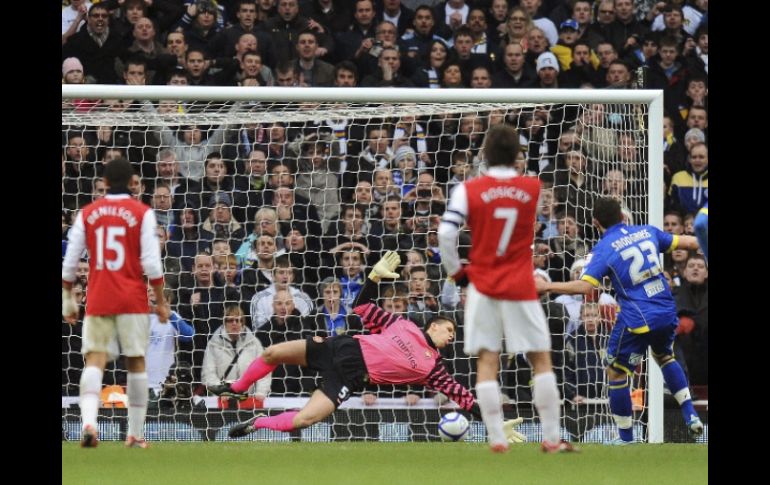 Deportes | Aprovechó un penal marcado en el último minuto de juego para sacar resultado a favor Arsenal se salva ante club del ascenso Aprovechó un penal marcado en el último minuto de juego para sacar resultado a favor Por: AP 8 de enero de 2011 - 11:15 hs Un penal de último minuto a favor del Arsenal fue la ocasión idónea para salvar el resultado. EFE / LONDRES, INGLATERRA (08/ENE/2011).- El mediocampista español Cesc Fábregas salvó el sábado al Arsenal de una derrota frente al Leeds de la segunda división inglesa con un gol de penal a los 90 minutos para que el partido de tercera ronda de la Copa de la FA terminara 1-1, mientras que el Sunderland, sexto en la liga Premier, no tuvo la misma suerte al quedar eliminado por el Notts County de la tercera categoría. El gol de Fábregas, luego que el defensor Ben Parker tomó de la camiseta al puntero Theo Walcott, obliga a jugar un partido de vuelta este mes en cancha de Leeds. Leeds, que el año pasado eliminó sorpresivamente al Manchester United en esta misma ronda, se había puesto en ventaja a los 54 minutos con un penal de Robert Snodgrass, luego que el brasileño Denilson derribó a Max Gradel. En la mayor sorpresa de la tercera ronda hasta ahora, Notts County venció 2-1 a Sunderland y le permitió a su técnico Paul Ince imponerse a su ex compañero en Manchester United Steve Bruce. Otros dos equipos de la primera división quedaron afuera ante rivales del ascenso. El recién ascendido Blackpool perdió 2-0 con Southampton, de tercera, y West Bromwich cayó 1-0 en su visita al Reading, de segunda. Temas Futbol Internacional Futbol Inglés Arsenal Lee También “El diablo fuma”, una dura mirada al abandono infantil en el país NFL: Resultados del Monday Night Football María Fernanda Prieto da el paso natural en el cine Futbol hoy 14 de octubre de 2025: ¿Dónde ver los partidos en vivo? Recibe las últimas noticias en tu e-mail Todo lo que necesitas saber para comenzar tu día Registrarse implica aceptar los Términos y Condiciones