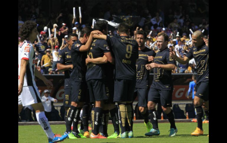 Deportes | Tras el triunfo de Pumas quedan definidos los encuentros de cuartos de final Así se jugará la Liguilla Apertura 2014 Tras el triunfo de Pumas quedan definidos los encuentros de cuartos de final Por: SUN 23 de noviembre de 2014 - 14:38 hs CIUDAD DE MÉXICO (23/NOV/2014).- Los Pumas de la UNAM obtuvieron este domingo el último pase a la Liguilla del futbol mexicano al vencer 4-2 al Monterrey y que con esto están definidos los encuentros de cuartos de final. (1) América vs Pumas (8) Ida: Miércoles 26, 22:00 horas, Estadio Olímpico Universitario Vuelta: Sábado 29, 17:00 horas, Estadio Azteca (2) Tigres vs Pachuca (7) Ida: Miércoles 26, 20:06 horas, Estadio Hidalgo Vuelta: Sábado 29, 19:00 horas, Estadio Universitario (3) Atlas vs Monterrey (6) Ida: Jueves 27, 19:00 horas, Estadio Tecnológico Vuelta: Domingo 30, 18:00 horas, Estadio Jalisco (4) Toluca vs Chiapas (5) Ida: Jueves 27, 21:00 horas, Estadio Víctor Manuel Reyna Vuelta: Domingo 30, 12:00 horas, Estadio Nemesio Díez Temas Futbol Mexicano Pumas de la UNAM Liga MX Liguilla Apertura 2014 Recibe las últimas noticias en tu e-mail Todo lo que necesitas saber para comenzar tu día Registrarse implica aceptar los Términos y Condiciones