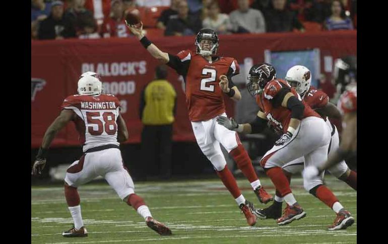 Deportes | Los Halcones se recuperan luego de la derrota de la semana pasada Atlanta retoma el paso Los Halcones se recuperan luego de la derrota de la semana pasada Por: AP 18 de noviembre de 2012 - 17:20 hs Matt Ryan fue muy presionado por al defensiva de los Cardenales. AP / ATLANTA, GEORGIA (18/NOV/2012).- Pese a cinco pases interceptados, Matt Ryan condujo al domingo a Atlanta en su único touchdown a la ofensiva en el último período y los Halcones vinieron de atrás para conseguir el domingo una victoria 23-19 sobre los Cardenales de Arizona. En un desprolijo desempeño, los Halcones (9-1) soltaron el balón seis veces, pero Michael Turner anotó con una carrera de una yarda a 6:40 del final para darle a Atlanta su primera ventaja del partido. Ryan orquestó la ofensiva con la anotación clave al completar cuatro pases para 64 yardas, incluyendo uno de 9 yardas a Tony González en jugada de tercera oportunidad y cinco yardas en la 10 de Arizona. Tras una fecha de descanso, Arizona (4-6) perdió su sexto partido seguido, sin que el cambio de quarterback, el novato Ryan Lindley por John Skelton, cambiara la suerte. Temas NFL Futbol Americano Halcones de Atlanta Cardenales de Arizona Lee También México vs. Argentina: Hora de alzar el pecho La sinfonía teutona suena en Sinsheim Astros de Jalisco doblega a Xalapa y se pone a un juego de la Final de Zona Futbol hoy 11 de octubre de 2025: ¿Dónde ver los partidos en vivo? Recibe las últimas noticias en tu e-mail Todo lo que necesitas saber para comenzar tu día Registrarse implica aceptar los Términos y Condiciones