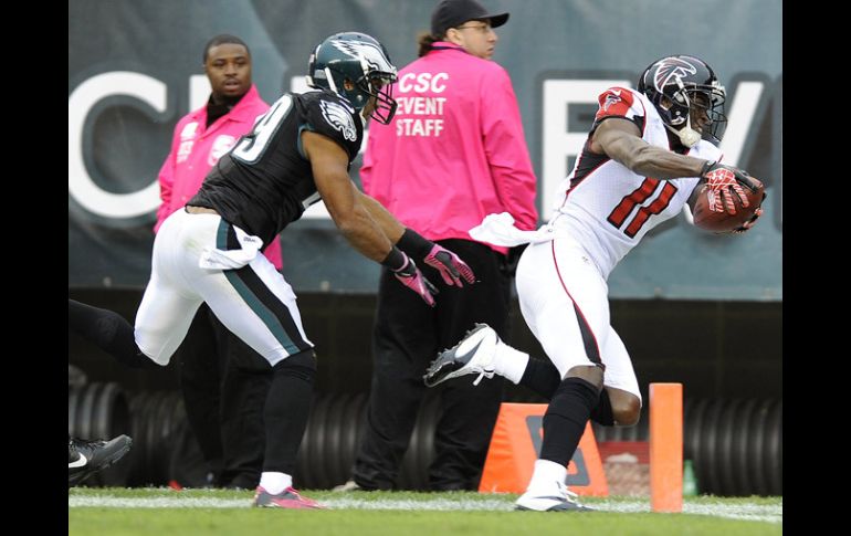 Deportes | El equipo de los Halcones vence 30-17 a las Águilas de Filadelfia Atlanta sigue invicto en la NFL El equipo de los Halcones vence 30-17 a las Águilas de Filadelfia Por: AP 28 de octubre de 2012 - 16:15 hs Julio Jones (11) atrapa un pase de anotación para Atlanta. AP / FILADELFIA, PENNSYLVANIA (28/OCT/2012).- Matt Ryan lanzó pases para touchdown en las primeras tres series ofensivas de Atlanta contra Filadelfia, para que los Halcones se conservaran el domingo como el único equipo invicto en la NFL con una victoria por 30-17 sobre las Águilas y su nuevo coordinador defensivo Todd Bowles. Los Halcones llevan marca de 7-0 por primera vez en la historia del equipo, en tanto que las Águilas (3-4) perdieron tras un fin de semana de descanso por primera vez en 14 partidos con el entrenador Andy Reid en el timón desde 1999. Ryan completó 22 de 29 pases para 262 yardas y tres anotaciones, con lo que consiguió su primera victoria contra el equipo de su ciudad natal en tres intentos. Michael Vick no perdió el balón esta vez, pero jugó mediocremente y no pudo imponerse a su antiguo equipo en su segundo arranque como titular contra los Halcones desde que regresó a la NFL en 2009. Los Halcones anotaron en sus primeras seis series ofensivas antes de patear para despeje por primera vez en el encuentro cuando ya quedaban 5:35 minutos de juego. Temas NFL Futbol Americano Águilas de Filadelfia Halcones de Atlanta Lee También Mundial Sub-20: EU golea a Italia y enfrentará a Marruecos NFL: Sorpresiva derrota de los Eagles ante Giants Dodgers va a la Serie de Campeonato; Chicago fuerza a quinto juego Futbol hoy 10 de octubre de 2025: ¿Dónde ver los partidos en vivo? Recibe las últimas noticias en tu e-mail Todo lo que necesitas saber para comenzar tu día Registrarse implica aceptar los Términos y Condiciones