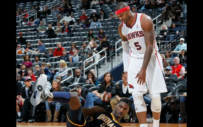 Deportes | Josh Smith ignora una molestia en el tendón y suma 21 puntos Atlanta vence a los Pacers 97-83 Josh Smith ignora una molestia en el tendón y suma 21 puntos Por: AP 11 de diciembre de 2010 - 20:59 hs Josh Smith, de Atlanta, comete falta y derriba a Roy Hibbert, de los Pacers, en el partido de hoy. AP / ATLANTA, ESTADOS UNIDOS (11/DIC/2010).- Josh Smith se recuperó de una molestia en el tendón de la corva y dominó a los Pacers de Indiana al anotarles 21 puntos para llevar el sábado a los Hawks de Atlanta a la victoria por 97-83 sobre los Pacers de Indiana. En tanto, el dominicano Al Horford se quedó a dos asistencias de un partido de dos dígitos en tres departamentos estadísticos en 40 minutos de juego para los Hawks. Encestó 16 puntos, recuperó 16 rebotes, repartió ocho asistencias, robó dos balones y perdió uno. Smith fue atendido por un calambre en el tendón de la corva derecha antes del partido, pero no dio señales de estar limitado por la molestia ante los Pacers. Tuvo dos triples consecutivos hacia el final del último período, en cada ocasión cuando los Pacers habían reducido la ventaja de Atlanta a siete puntos. Jamal Crawford encabezó a los Hawks con 25 puntos. Crawford y Smith se combinaron para anotar 18 de sus 21 tiros libres. Mike Dunleavy convirtió 16 puntos, mientras Danny Granger y Brandon Rush contribuyeron con 14 puntos cada uno para los Pacers. Temas NBA Basquetbol Indiana Pacers Hawks de Atlanta Lee También NFL: Resultados del Monday Night Football Astros se instalan en la final de zona de la LNBP Astros de Jalisco doblega a Xalapa y se pone a un juego de la Final de Zona Astros de Jalisco toma ventaja sobre Xalapa en la semifinal de zona Recibe las últimas noticias en tu e-mail Todo lo que necesitas saber para comenzar tu día Registrarse implica aceptar los Términos y Condiciones