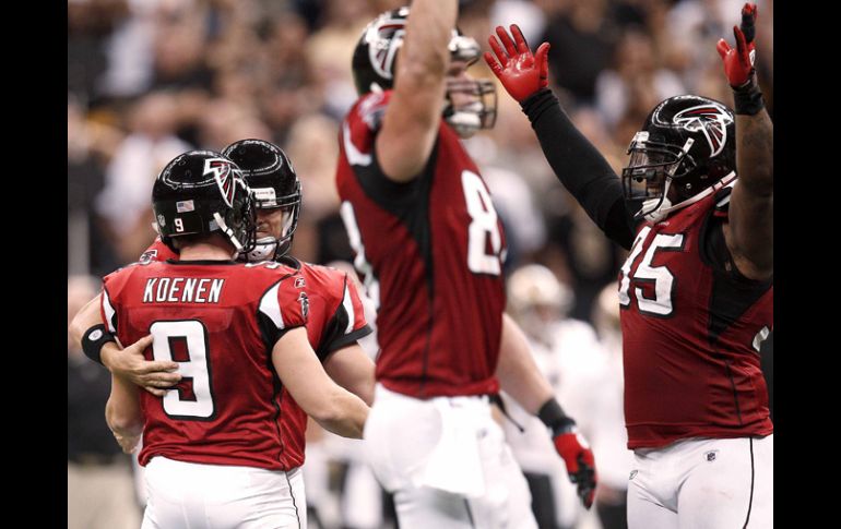 Deportes | Santos tuvo la oporutnidad de seguir invicto pero fallaron un gol de campo Atlanta vence al campeón Los Halcones ganan en tiempo extra 27-24 a los Santos de Nueva Orleans Por: AP 26 de septiembre de 2010 - 16:33 hs El pateador de Halcones de Atlanta Matt Bryant (3) celebra con Michael Koenen (9) la victoria. REUTERS / NUEVA ORLEANS, LOUISIANA (26/sep/2010).- Matt Bryant hizo lo que Garrett Hartley no podía, concretar un gol de campo de 46 yardas con 1:55 en el tiempo extra para levantar a los Halcones de Atlanta a una victoria de 27-24 sobre los Santos de Nueva Orleans el domingo. Santos parecía tener una emocionante victoria en la mano cuando Drew Brees impulsó a Nueva Orleans hasta la yarda 11 en el territorio Halcones para la creación de un gol de campo de 29 yardas en tiempo extra. En su lugar, Hartley enganchado el tiro a la izquierda por su tercera falla esta temporada. Matt Ryan pasó para 228 yardas y un touchdown de 13 yardas a Tony González y 22 yardas a Roddy White para dar a los Halcones (2-1) su segunda victoria consecutiva. Lance Moore tuvo un par de recepciones para TD de Nueva Orleans (2-1), incluyendo una carrera de 80 yardas de largo. Temas NFL Futbol Americano Halcones de Atlanta Santos de Nueva Orleans Recibe las últimas noticias en tu e-mail Todo lo que necesitas saber para comenzar tu día Registrarse implica aceptar los Términos y Condiciones