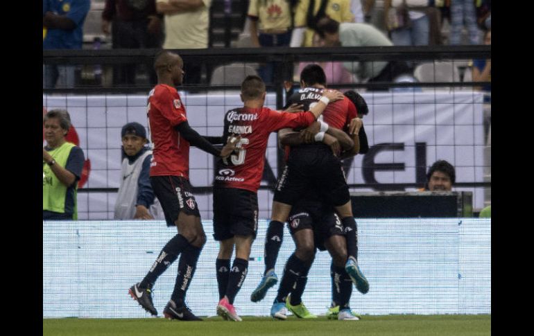 CIUDAD DE MÉXICO (29/ABR/2017).- Los rojinegros del Atlas de Guadalajara obtuvieron hoy un valioso triunfo en el Estadio Azteca al imponerse 2-1 al América.El resultado, concretado gracias a goles en el primer tiempo de Jiménez y Alustiza, asegura a los rojinegros un lugar en la Liguilla.José Guadalupe Cruz, el técnico de Atlas usó la misma alineación que venció a Pachuca la jornada pasada.Los rojinegros no dejaron pasar tiempo: al minuto 4 ya estaban adelante con un gol de Leiton Jiménez, quien burló la marca de Álvarez y anotó de cabeza en una jugada de tiro de esquina.Tal vez se trató de la semana tensa, cuyo tema dominante fue la polémica salida de Ricardo Peláez, presidente deportivo azulcrema. Lo cierto es que en el primer tiempo las Águilas aparecieron como extraviadas en su propia casa, incapaces de generar peligro aunque se tratara de tiros libres, que Arroyo mandó sin falta a la tribuna.Atlas en cambio, se paró con autoridad en el Azteca. Los rojinegros anularon el juego por las bandas del América y potenciaron el propio. Los Zorros mostraron frescura, ambición y puntería, la mejor muestra fue el gol del 2-0, una belleza anotada por Matías Alustiza desde las afueras del área azulcrema al minuto 15.Durante la segunda parte Atlas se propuso a administrar el resultado. La estrategia de los rojinegros dejó vivir al América, que generó serio peligro en el área tapatía, sobre todo por conducto de Lainez, que entró al minuto 60 por Romero y apareció primero por derecha y después por izquierda.La mayor iniciativa de los azulcremas rindió frutos al 85, cuando el árbitro Fernando Hernández Gómez decretó un penalti en favor de las Águilas.Oribe Peralta hizo buena la pena máxima y el partido concluyó con ambos equipos buscando desesperadamente un tanto, aunque el marcador ya no se movió.La victoria da un fuerte envión anímico a los rojinegros, que además alcanzan 26 unidades, se colocan terceros en la tabla general, y aseguran su pase a la fiesta grande, de la que los azulcremas podrían quedar fuera de no obtener un buen resultado en la última jornada del torneo.ALINEACIÓNAMÉRICA (5-3-2): Marchesin; Valdéz, Mares (Quintero, 45'), Aguilar, Samudio, Álvarez ; Guerrero (Marín, 70'), Arroyo, Da Silva, Romero (Lainez, 60'), Peralta, DT La VolpeATLAS (4-4-2): Fraga; Jiménez, Reyes, Madueña, Barreiro; Salas, Robles, Garnica, Álvarez (Tabó, 48'); Barragán (Saldívar, 73'), Alustiza (Barraza, 86'), D.T.CruzÁRBITRO: Fernando Hernández GómezLEE EL MINUTO A MINUTO DE ESTE PARTIDO