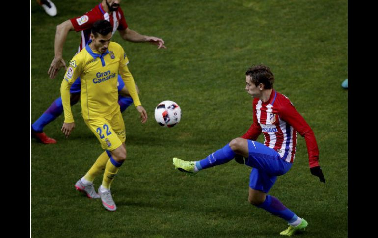MADRID, ESPAÑA (10/ENE/2017).- El Atlético de Madrid completó este martes su pase a los cuartos de final de la Copa del Rey ante Las Palmas con una derrota (2-3), dos goles del francés Antoine Griezmann y del argentino Ángel Correa y una parada con 0-0 de Miguel Ángel Moyá, fundamentales para evitar tensiones, y con el susto final del 2-3.Desde esa intervención, a remate del croata Marko Livaja, y desde los tantos en el segundo tiempo de su pareja de ataque titular ante el conjunto canario ratificó el equipo madrileño su presencia en el sorteo del viernes, resuelta con un global de 4-3 y encaminada desde hace una semana, desde el 0-2 de la ida en el estadio Gran Canaria.Ese resultado condicionó el duelo de vuelta, porque Las Palmas fue consciente de esa desventaja antes del partido, por las declaraciones previas de su técnico, Quique Setién, y su configuración del once, con hasta diez cambios en su equipo titular respecto al pasado sábado en la Liga, y durante el encuentro.Menos rotaciones presentó el argentino Diego Simeone: cuatro. No hubo descanso, entre otros, para el uruguayo Diego Godín ni para Koke Resurrección, de vuelta al medio el primer tiempo, ni para Saúl Ñíguez ni para Griezmann, al principio protagonista en casi todo lo que hizo en ataque el equipo rojiblanco y después en el primer gol.Igual que el argentino Nicolás Gaitán, uno de los fichajes estrellas del Atlético el pasado verano, por debajo de las expectativas hasta el momento, fuera de la importancia crucial que se preveía hace unos meses y hoy de vuelta al once. Primero mostró detalles; después, tras el descanso, fue transcendente en el 1-0.De él surgió el gol. De su visión, velocidad y precisión con una vertiginosa pared con Griezmann que desbordó a Las Palmas. El argentino asistió, el francés marcó el gol. Era el minuto 48 y un paso adelante más del Atlético en una eliminatoria que tuvo algo de debate en el primer tiempo, más por un susto que por otra cosa.Porque antes el Atlético había comenzado el duelo con un dominio prácticamente improductivo en ocasiones, controlador pero sin profundidad ni precisión en los últimos metros, y porque Las Palmas amagó con revitalizar la emoción; a la media hora, con un remate del croata Marlo Livaja que solventó con reflejos Miguel Ángel Moyá.No era entonces un asunto menor. La eliminatoria estaba encaminada, sí, pero no decidida, porque un gol de Las Palmas, camino del descanso más y mejor con la pelota y con otra oportunidad de Tana, al que le falló la altura de su disparo en el área, hubiera reabierto la discusión sobre la clasificación para cuartos de final.No lo consiguió entonces el conjunto canario, que desaprovechó su momento del partido y que, nada más volver del vestuario, recibió el citado 1-0 de Griezmann. Ya había entrado al campo, en el descanso, Gabi Fernández por un sobrecargado Lucas Hernández en el Atlético, había vuelto Juanfran al lateral derecho, Koke a la banda.El gol del francés evitó problemas, porque después marcó Las Palmas, en una acción individual de Livaja, culminada con un potente derechazo cruzado, como también lo hizo más tarde su compañero Ángel Correa, autor del 2-1, con astucia y velocidad, dos cualidades del atacante, que recogió un despeje y fabricó el 2-1.Después contestó su rival con el 2-2 del croata y con el 2-3 de Mateo García, el susto final con el que se cerró la clasificación del Atlético