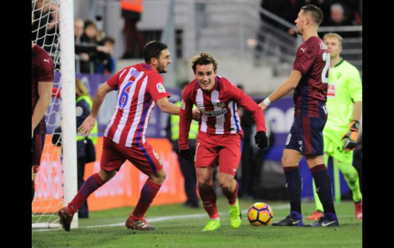 ÉIBAR, ESPAÑA (07/ENE/2017).- Atlético de Madrid está muy cerca ya de los punteros de la Liga Española de futbol, luego de dar cuenta del conjunto local Éibar, por marcador de 2-0 en duelo de la fecha 17 de la competencia. Saúl Ñíguez, en el minuto 54, y el francés Antoine Griezmann, en el 74, le dieron forma al marcador para que de esa manera, el cuadro "colchonero" sumara tres unidades y posiciones importantes en la tabla. Con la victoria de este día, la escuadra que dirige el argentino Diego Simeone se ubicó en la cuarta posición de la general con 31 unidades y ya presiona por lo pronto al Villarreal, en tanto que el Éibar se quedó en 23. Tanto en la liga como en la Copa del Rey, el "Atleti" marcha con muy buen paso y en este cotejo dejó constancia de que quiere volver a ser protagonista en los dos, con el estilo que le ha sabido imponer Simeone. En este encuentro, el cuadro Colchonero impuso sus condiciones para definir el encuentro en el momento en que se decidió, para regresar a casa con tres puntos que lo ponen ya en zona de torneo europeo.