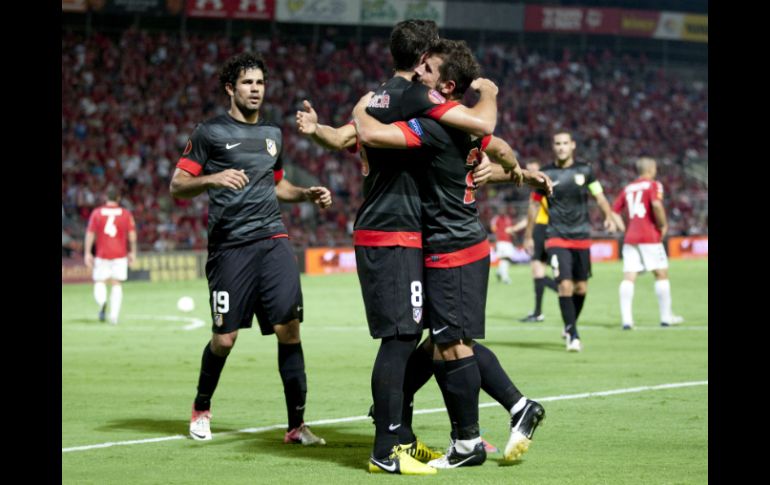 Deportes | El equipo defensor del título arranca la Europa League con goleada en Israel Atlético debuta con supremacía El Atético de Madrid, defensor del título, arranca la Europa League con goleada en Israel Por: AFP 20 de septiembre de 2012 - 13:59 hs Jugadores del Atlético de Madrid festejan su triunfo. AP / TEL AVIV, ISRAEL (20/SEP/2012).- El Atlético de Madrid, plagado de suplentes y sin la participación de su estrella colombiana Radamel Falcao, inició la defensa de su título en la Europa League con una victoria cómoda en el campo del Hapoel Tel Aviv (3-0), este jueves en la primera jornada del grupo B. Pese a la ausencia de Falcao, hubo protagonismo sudamericano: el uruguayo Cristian 'Cebolla' Rodríguez consiguió el primer tanto en el minuto 37 y el brasileño Diego Costa logró el segundo en el 40. En la segunda, el español Raúl García firmó el tercero y definitivo en el 63. Teniendo en cuenta los resultados de la pasada campaña en este torneo y el triunfo de agosto en la Supercopa continental, el equipo 'colchonero' lleva catorce victorias seguidas en competiciones europeas. El técnico argentino del equipo, Diego Simeone, había decidido dejar en Madrid a varios pesos pesados del plantel, como Falcao, el turco Arda Turan, el uruguayo Diego Godín, el brasileño Filipe Luis o el español Gabi. Por lo mostrado por ambos equipos, el 'Cholo' Simeone acertó dando descanso a varias de sus estrellas, ya que los suplentes bastaron para dominar en el juego a un Hapoel voluntarioso pero sin excesiva calidad. Raúl García (minuto 10), Diego Costa (18) y Adrián López (30) dispusieron de buenas ocasiones para abrir el marcador, pero el honor fue para el 'Cebolla' Rodríguez (37), después de que Raúl García recuperara, cediera para Diego Costa y éste para el uruguayo, que remató desde la frontal del área. Apenas tres minutos más tarde, Raúl volvió a recuperarar y esta vez combinó con Adrián, que fue quien asistió a Diego Costa, que dribló al portero y marcó a puerta vacía (40). En la segunda mitad, el Atlético amplió su ventaja, en un partido ya sentenciado y apenas emoción. Raúl García, muy activo, lo intentó en el 57, pero su premio llegó en el 63, cuando envió de volea a la red, tras un saque de esquina del turco Emre Belozoglu. La goleada pudo ser mayor, pero el árbitro anuló un gol a Diego Costa (72) por fuera de juego y Koke (79, 83) no estuvo acertado en la ejecución. Durante el partido, Falcao estuvo siguiendo el encuentro y contando lo que allí pasaba en su cuenta de la red social Twitter. "Terminó en Israel Hapoel 0 úAtleti 3 Gran partido de mis compañeros en Israel! Los esperamos de vuelta por acá!", escribió el 'Tigre' justo al final del partido. Este triunfo en Tel Aviv encarrila el camino del campeón hacia los dieciseisavos de final. En la segunda jornada, el 4 de octubre, el Atlético recibirá al Viktoria Pilsen checo, mientras que el Hapoel tratará de corregir el rumbo en el terreno de la Académica de Coimbra portuguesa. Temas Futbol Internacional Europa League Atlético de Madrid UEFA Recibe las últimas noticias en tu e-mail Todo lo que necesitas saber para comenzar tu día Registrarse implica aceptar los Términos y Condiciones