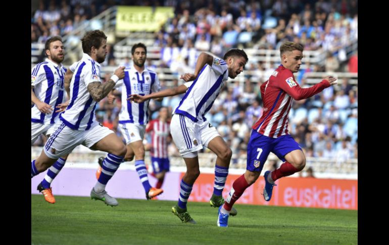 Deportes | El cuadro colchonero gana 2-0 con tantos de Griezmann y Carrasco Atlético derrota a Real Sociedad; Reyes sale expulsado El cuadro colchonero gana 2-0 con tantos de Griezmann y Carrasco Por: EFE 18 de octubre de 2015 - 11:01 hs Reyes no pudo con la gran ofensiva Rojiblanca, al último salió con tarjeta roja. AP / A. Barrientos SAN SEBASTIÁN, ESPAÑA (18/OCT/2015).- El Atlético de Madrid venció en Anoeta (0-2), aupado por un Griezmann estelar, autor de un primer golazo y mejor futbolista rojiblanco sobre el césped, a la Real Sociedad, víctima de los nervios, y que concluyó el partido con nueve jugadores. El conjunto local no tuvo casi tiempo de situarse en el terreno de juego y empezar a generar algún peligro que animara a la grada, porque a los nueve minutos marcó Antoine Griezmann el gol que dejó expedito el camino hacia la victoria atlética. El francés, en su segunda visita a Anoeta como jugador colchonero, no quiso celebrar el tanto por respeto a sus excompañeros. El jugador francés se hizo con un balón en propio campo rojiblanco y atravesó la autopista que dejó libre la zaga donostiarra para plantarse frente a Gero Rulli, al que batió de forma magistral con una bella vaselina para acreditar su excelente calidad. Rojiblancos y blanquiazules, hasta el final del partido, rivalizaron en intensidad y también en falta de profundidad, lo que convirtió el encuentro en plano y previsible para sufrimiento de una hinchada local preocupada por el panorama que se presentaba en caso de derrota. Cholo Simeone movió ficha mediada la segunda parte para intentar romper la hegemonía infructuosa en el juego donostiarra, que estuvo cerca de marcar por medio del colombiano Jackson en propia portería en un saque de esquina, y buscó las habilidades del belga Ferreira Carrasco para rematar el encuentro. David Moyes también hizo algún movimiento tardío desplegando todo el arsenal que acumulaba en su banquillo, el brasileño Jonathas y el portugués Bruma fueron sus exponentes, pero tampoco cambiaron las cosas tras estas modificaciones y el partido siguió soporífero. El Atlético mantuvo el orden hasta el último minuto y los donostiarras se desgastaron en un quiero y no puedo para intentar un empate que estuvo lejos de alcanzar, hasta que en el tiempo de descuento un desequilibrio del uruguayo José María Giménez sobre el brasileño Jonathas pudo ser penalti. El árbitro no lo vio así y, mientras los guipuzcoanos discutían con Iglesias Villanueva, el Atlético montó una fulgurante contra que terminó con el 0-2 de Carrasco y un tumulto que se saldó con varias amarillas y la tarjeta roja al brasileño Jonathas, que protestaban el posible penalti en la acción anterior. La Real entra ahora en zona de peligro y en una crisis de resultados preocupante, al tiempo que los madrileños se mantienen a dos puntos del liderato y en la zona 'Champions' y superan con nota pero sin brillo el parón liguero que tanto preocupaba a sus seguidores. - Ficha técnica 0 - Real Sociedad: Rulli; Zaldua, Iñigo Martínez, Diego Reyes, De la Bella; Illarramendi, Markel Bergara (Pardo, min. 83), Zurutuza (Jonathas, min 83); Canales (Bruma, min. 72), Vela, Agirretxe. 2 - Atlético de Madrid: Oblak; Godín, Giménez, Siqueira, Juanfran; Gabi, Tiago, Correa; Koke (Carrasco, min. 62), Griezmann (Saúl, min. 85) y Jackson (Torres, min. 63). Goles: 0-1,min. 8: Griezmann. 0-2, min. 90: Carrasco. Árbitro: Iglesias Villanueva (Comité Gallego). Enseñó tarjeta roja a Diego Reyes (minuto 88) por doble amonestación y directa Jonathas (90). Tarjetas amarillas a Bergara, De la Bella, Vela, Rulli, Filipe Luis, Gabi, Giménez, Correa y Godín. Incidencias: Partido de la octava jornada de la Liga BBVA, disputado en el estadio de Anoeta ante 25.644 espectadores. Aplausos a Griezmann cuando fue sustituido en el segundo tiempo. Temas Mexicanos en Europa Futbol Español Futbol Internacional Atlético de Madrid Carlos Vela Recibe las últimas noticias en tu e-mail Todo lo que necesitas saber para comenzar tu día Registrarse implica aceptar los Términos y Condiciones