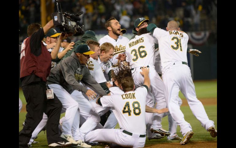Deportes | El equipo de Oakland da la vuelta en el marcador a Detroit en la última entrada Atléticos vencen a Tigres y obligan a un quinto juego El equipo de Oakland da la vuelta en el marcador a Detroit en la última entrada Por: NTX 11 de octubre de 2012 - 00:25 hs Todo el equipo de los Atléticos de Oakland celebran al terminar el juego. AFP / OAKLAND, CALIFORNIA (11/OCT/2012).- El serpentinero zurdo, Brett Anderson, lanzó seis sólidos episodios mientras que la defensiva de Atléticos hizo espectaculares lances para detener el ataque rival, con lo que ambos guíaron a Oakland a un triunfo sobre Tigres de Detroit por blanqueada de 2-0. Con este resultado, Oakland toma la cabeza de la serie divisional de la Liga Americana, con un saldo a favor de dos a uno, antes del juego de miércoles. En el siguiente encuentro, Oakland enviará a la lomita de las serpentinas al derecho A.J. Griffin (7-1 y 3.06 de promedio de carreras limpias permitidas) en tanto que el abridor de Detroit será Mark Scherzer (16-7 y 3.74). Andurson estuvo en la lomita de las serpentinas durante seis espisodios en los que la podersa ofensiva de Detroit sólo le pudo conectar dos imparables, ponchó a seis y concedió dos bases por bolas, en tanto que el relevista Grant Balfour retiró la novena entrada y apuntó su primer salvamento. La derrota se le cargó al abridor venezolano Aníbal Sánchez. Fue en la parte baja de la primera entrada cuando el conjunto de Oakland se enfiló al triunfo al anotar una carrera para el jardinero central Coco Crisp, quien llegó al pentágono gracias a un imparable producto del jardinero izquierdo cubano Yoenis Céspedes. La segunda anotación del equipo de casa llegó hasta la quinta entrada y cayó gracias a un bateo de largo alcance, cuando el bateador designado Seth Smih conectó jonrón solitario por todo el jardín central. Temas Beisbol MLB Atléticos de Oakland Tigres de Detroit Lee También Dónde ver EN VIVO los juegos de MLB, HOY 11 de octubre Dodgers, entre la angustia y la gloria MLB: Marineros vence a Tigres en maratónico juego y avanza a la Serie de Campeonato Dónde ver EN VIVO los juegos de MLB, HOY 10 de octubre Recibe las últimas noticias en tu e-mail Todo lo que necesitas saber para comenzar tu día Registrarse implica aceptar los Términos y Condiciones