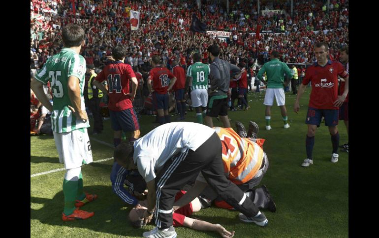 Deportes | Cuatro personas resultaron heridas y han sido trasladadas al hospital Avalancha empaña juego entre Osasuna y Betis Cuatro personas resultaron heridas y han sido trasladadas al hospital Por: EFE 18 de mayo de 2014 - 11:27 hs PAMPLONA, ESPAÑA (18/MAY/2014).- Cuatro personas han sido trasladadas por la Cruz Roja al Complejo Hospitalario de Navarra, dos de ellas con fracturas de extremidades inferiores y otras dos con contusiones, a consecuencia de la avalancha que se ha producido en el estadio de El Sadar durante el Osasuna-Betis, ha informado el Gobierno de Navarra (España). La avalancha se ha producido en el minuto 12 de partido tras el gol de Osasuna contra el Betis en el fondo sur del estadio pamplonés. El gol de Oriol Riera llevó el entusiasmo a la grada y la presión de los aficionados sobre las primeras filas hizo que cediera la valla y varios seguidores cayeran al césped. Temas Futbol Español Futbol Internacional Accidentes deportes Club Atlético Osasuna Lee También “El diablo fuma”, una dura mirada al abandono infantil en el país NFL: Resultados del Monday Night Football María Fernanda Prieto da el paso natural en el cine Futbol hoy 14 de octubre de 2025: ¿Dónde ver los partidos en vivo? Recibe las últimas noticias en tu e-mail Todo lo que necesitas saber para comenzar tu día Registrarse implica aceptar los Términos y Condiciones