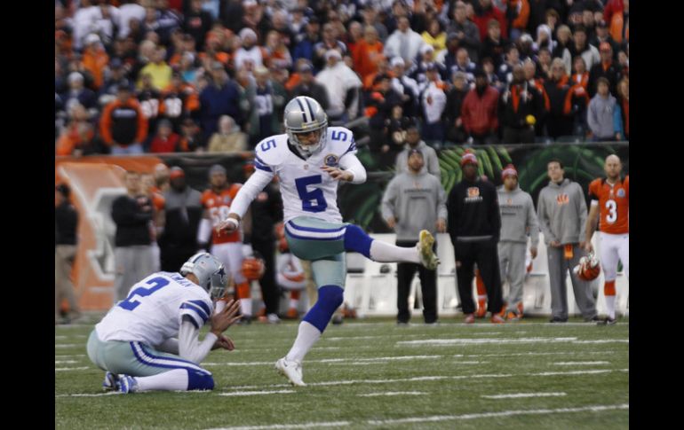 Deportes | Los Vaqueros vencen 20-19 a los Bengalíes de Cincinnati Bailey da un agónico triunfo a Dallas Los Vaqueros vencen 20-19 a los Bengalíes de Cincinnati Por: EFE 9 de diciembre de 2012 - 17:14 hs Bailey conecta el gol de campo con el que Dallas ganó a Cincinnati. REUTERS / CINCINNATI, OHIO (09/DIC/2012).- El pateador Dan Bailey anotó hoy un gol de campo de 40 yardas en el momento en que el tiempo regular expiraba y dio a los Vaqueros de Dallas una victoria por 19-20 sobre los Bengalíes de Cincinnati. En un encuentro en el que ambos equipos se jugaban un pase a las finales, los Vaqueros (7-6) se sobrepusieron a la tragedia que el equipo vivió un día antes, cuando el integrante del equipo Jerry Brown perdió la vida en un accidente automovilístico. Mientras que el defensivo Josh Brent, quien iba conduciendo el auto bajo los efectos del alcohol, recibió cargos de homicidio involuntario. El mariscal de campo de los Vaqueros, el hispano Tony Romo, completó 25 de 43 envíos para 268 yardas, con un pase de anotación y otro interceptado, que ayudaron también al equipo de Dallas a conseguir la segunda victoria consecutiva. Los Bengalíes (7-6) fueron conducidos por su mariscal de campo Andy Dalton, que completó 20 de 33 pases, y ganancias de 206 yardas, un pase de anotación y una interceptación. Temas NFL Futbol Americano Bengalíes de Cincinnati Vaqueros de Dallas Lee También Futbol hoy 18 de octubre de 2025: ¿Dónde ver los partidos en vivo? Dónde ver EN VIVO Brewers vs Dodgers por el Juego 4 de la Serie de Campeonato LN 2025 Chivas "borra" a Omar N de su historia tras presunto delito El Tri Sub-17 femenil va por la revancha mundialista en Marruecos Recibe las últimas noticias en tu e-mail Todo lo que necesitas saber para comenzar tu día Registrarse implica aceptar los Términos y Condiciones