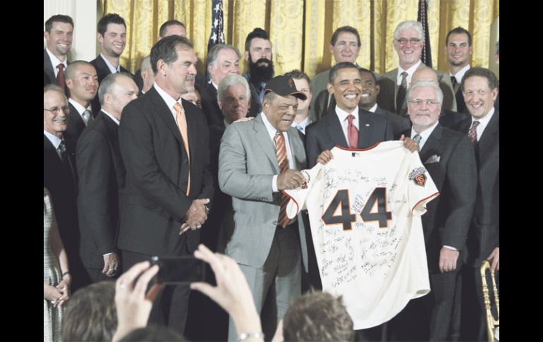 Deportes | Acompaña al equipo la leyenda del beisbol, Willie Mays Barack Obama recibe a unos Gigantes en la Casa Blanca El primer mandatario estadounidense alaba a los campeones reinantes de Grandes Ligas, San Francisco, antes de ofrecer hacia su nación un discurso trascendental Por: EFE 26 de julio de 2011 - 04:09 hs Barack Obama sostiene un jersey autografiado que le regaló el equipo campeón de la MLB. REUTERS / ESTADOS UNIDOS (26/JUL/2011).- El presidente estadounidense Barack Obama hizo un paréntesis en la preparación del discurso que ofreció anoche a todo el país sobre la negociación de la deuda pública y recibió en la Casa Blanca a los Gigantes de San Francisco, actuales campeones de la Serie Mundial de las Grandes Ligas. Obama no tuvo problemas en alabar a los "personajes con carácter" de los Gigantes, y el que más llamó la atención fue el cerrador Brian Wilson, quien se presentó con una enorme barba negra y un peinado a lo punk. El presidente estadounidense recibió a los Gigantes, de la Liga Nacional, para felicitarlos por el triunfo que lograron en la Serie Mundial de 2010, cuando ganaron por 4-1 a los Rangers de Texas, que fueron los representantes de la Americana. Obama pidió que le acompañasen para la recepción a varios legisladores, entre ellos la líder demócrata de la Cámara Baja, Nancy Pelosi, que es californiana, junto a Willie Mays, una de las grandes leyendas del beisbol profesional, que jugó con los Gigantes. El mandatario estadounidense recordó que Mays era un jardinero de 23 años de edad cuando los Gigantes, como franquicia, ganaron su anterior Serie Mundial en 1954, lo que demostraba lo importante de la perseverancia y convencimiento de luchar siempre por alcanzar los objetivos que uno se establezca. Obama también destacó la labor del pitcher abridor estelar Tim Lincecum, conocido como "El Fenómeno", y del propio Wilson, famoso por una larga barba y un atuendo estrafalario. El presidente estadounidense dijo que los Gigantes podrían ser "un poco diferentes", pero "una cosa que han demostrado es que saben mejor que nadie cómo ganar". Obama tiene como equipo preferido dentro del deporte del beisbol de las Grandes Ligas, a los Medias Blancas de Chicago, que actualmente dirige el venezolano Ozzie Guillén. De hecho, Obama, cuando era senador por el Estado de Illinois, fue el encargado de hacer el lanzamiento de honor en un partido de la fase final de 2005 que disputaron los Medias Blancas. Padres evita barrida y otra humillación de los Filis El duelo de abridores estelares esta vez cayó del lado Aaron Harang, quien fue mejor que el zurdo Cliff Lee y los Padres de San Diego vencieron por 5-4 a los Filis de Filadelfia, el equipo con mejor récord en todas las Grandes Ligas. Harang estuvo dominante desde el montículo y además recibió el apoyo del ataque de los Padres con el jardinero Chris Denorfia, quien anotó en la tercera entrada al aprovechar un tiro flojo de Lee a la primera base. La acción de Denorfia iba a ser decisiva porque le dio a los Padres la ventaja parcial de 3-1 y les mantuvo en el juego para conseguir el racimo de cuatro anotaciones en la parte alta de la segunda entrada.El primera base venezolano Jesús Guzmán también formó parte del bate oportuno de los Padres al irse de 4-1 con una carrera anotada. Harang (9-2) permitió dos carreras en seis episodios para ayudar a los Padres a impedir una barrida de cuatro partidos y derrotar a los Filis por vez primera desde el 7 de junio de 2010. Los Filis habían ganado a los Padres 10 veces consecutivas, su segunda racha más larga contra ellos desde que consiguieron 11 triunfos seguidos de 2004 a 2006. Lee (9-7) duró sólo cuatro entradas en el montículo, su segunda actuación más corta de la temporada después de que cedió 10 imparables, cinco carreras y un error que permitió a Denorfia robarse la registradora. La acción se dio cuando Lee hizo un lanzamiento suave hacia la primera base y dio tiempo a Denorfia para que desde la tercera saliera con gran velocidad hasta el home sin que el receptor panameño Carlos Ruiz lo pudiese poner “out" cuando recibió la pelota del inicialista Ryan Howard. Temas Beisbol Barack Obama MLB Gigantes de San Francisco Recibe las últimas noticias en tu e-mail Todo lo que necesitas saber para comenzar tu día Registrarse implica aceptar los Términos y Condiciones