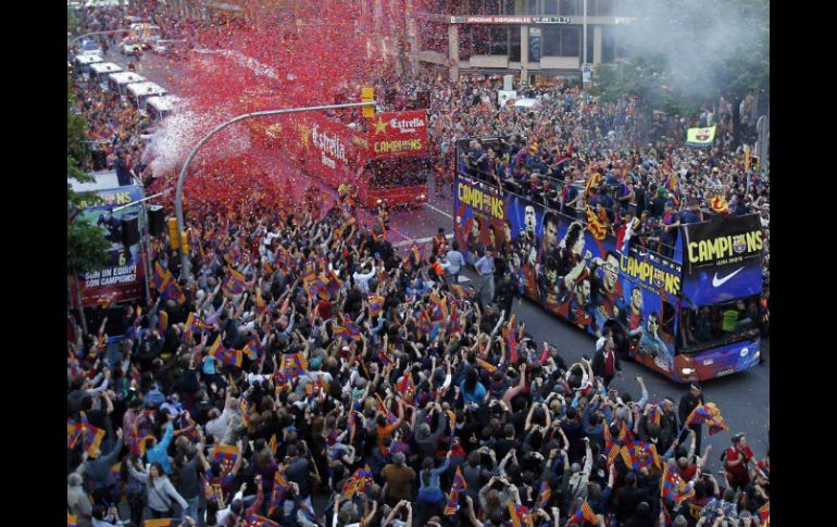 Deportes | El plantel del cuadro Blaugrana presume a sus fans el premio conquistado Barça celebra con seguidores su título de Liga El plantel del cuadro Blaugrana presume a sus fans el premio conquistado durante casi tres horas Por: NTX 13 de mayo de 2013 - 15:03 hs El Club Barcelona festeja sobre las calles de la ciudad con alrededor de 500 mil seguidores la obteción del trofeo. EFE / BARCELONA, ESPAÑA (13/MAY/2013).- El Futbol Club Barcelona festejó hoy en las calles de la ciudad y con alrededor de 500 mil seguidores la obtención de la Liga de España, la cual significó la número 22 para la historia del equipo. Gracias a la combinación de resultados del pasado fin de semana, el triunfo culé de 2-1 sobre el Atlético de Madrid, y el empate 1-1 del Real Madrid contra el Espanyol, pero sobre todo por la gran regularidad mostrada a lo largo del torneo, el Barça se coronó en la Liga. A bordo de un autobús descapotable, el plantel del cuadro Blaugrana celebró y presumió a sus fans el trofeo conquistado, durante casi tres horas en las que hubo cánticos y baile. Miles de aficionados arroparon a los futbolistas culés, quienes portaron la playera de campeón, así como bufandas y banderas del club para redondear la celebración saludando a los fieles seguidores. El argentino Lionel Messi, el francés Eric Abidal, Cesc Fábregas, el chileno Alexis Sánchez y el resto de los jugadores tomaron, uno por uno, el trofeo, que era apreciado por todos. El técnico Francesc "Tito" Vilanova se vio mesurado en la celebración. En la glorieta de Colón y las avenidas, desde el World Trade Center hasta la Placa del Doctor Ignasi Barraquer, fue el trayecto que tuvo el Barcelona para compartir esta gran alegría con sus seguidores, a falta de dos fechas para que concluya la temporada 2012-2013. Además del autobús que transportó al primer plantel, hubo dos camiones más, uno encargado de llevar a un grupo de animación para "prender" más a los aficionados con bailes, cánticos y el himno del club, y el otro condujo al equipo femenil A, que también se coronó en su Liga. Temas Futbol Español Futbol Internacional Barcelona Lionel Messi Lee También Futbol hoy 22 de octubre de 2025: ¿Dónde ver los partidos en vivo? ¿Cuánto vale la 'Hormiga' González, joya de Chivas que ya es pretendida fuera de México? Atlas busca revancha ante León en el Estadio Jalisco México se impone a Países Bajos y respira en el Mundial Sub-17 Femenil Recibe las últimas noticias en tu e-mail Todo lo que necesitas saber para comenzar tu día Registrarse implica aceptar los Términos y Condiciones