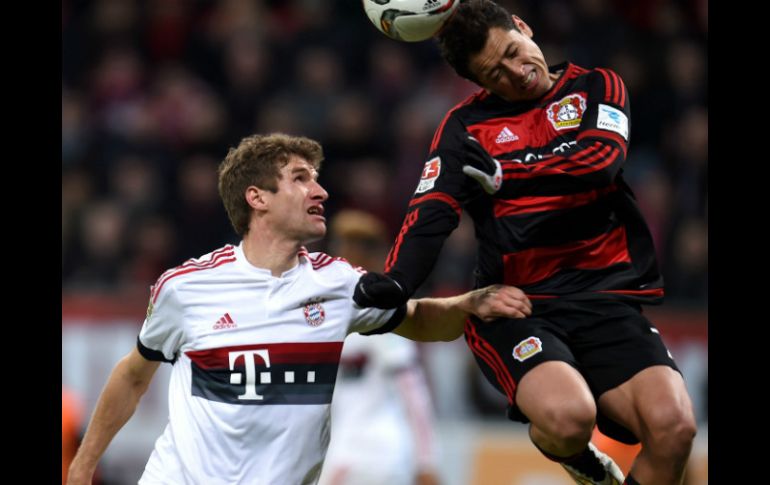 Deportes | 'Chicharito' estuvo cerca de anotar por Leverkusen en el complemento Bayern empata sin goles con Leverkusen Javier ''Chicharito'' Hernández estuvo cerca de anotar por Leverkusen en el complemento Por: AP 6 de febrero de 2016 - 13:59 hs ''Chicharito'' no pudo, en esta ocasión, ayudar a su equipo para llevarse el triunfo. AFP / P. Stollarz BERLÍN, ALEMANIA (06/FEB/2016).- Bayern Munich desperdició una oportunidad para alejarse a 10 puntos en la cima de la Bundesliga al empatar el sábado sin goles con Bayer Leverkusen. Fue apenas la tercera vez que el equipo de Pep Guardiola deja puntos sobre la mesa en 20 partidos esta temporada. Además, Xabi Alonso fue expulsado al final del encuentro por dos amonestaciones en cuestión de minutos. El primer tiempo tuvo sólo una ocasión de gol, un cabezazo de Omer Toprak que terminó en los brazos de Manuel Neuer. "En el primer tiempo no pudimos hilar más de cuatro o cinco pases. Así es imposible", dijo Guardiola, cuyo equipo todavía encabeza la clasificación por ocho puntos. El mexicano Javier "Chicharito" Hernández estuvo cerca de anotar por Leverkusen en el complemento. "El empate sin goles es justo, aunque al final tuvimos suerte", comentó el zaguero de Leverkusen, Jonathan Tah. Por su parte, Borussia Dortmund empató 0-0 con Hertha Berlin en un partido que fue visto desde las gradas por Jose Mourinho. El entrenador portugués fue invitado por el director ejecutivo de Dortmund, Hans-Joachim Watzke, cuyo equipo no pudo superar la disciplinada defensa de los anfitriones. "Está bien. Si me reemplaza la próxima semana, entonces no está bien", dijo el timonel de Dortmund, Thomas Tuchel, sobre la presencia del ex técnico de Chelsea y Real Madrid. En otros partidos, Schalke derrotó 3-0 a Wolfsburgo, Stuttgart ganó 4-2 a Eintracht Frankfurt, Ingolstadt superó 2-1 a Augsburgo, y Mainz ganó 1-0 a Hannover. Temas Futbol Internacional Futbol Alemán Javier 'Chicharito' Hernández Bayern Munich Bayer Leverkusen Recibe las últimas noticias en tu e-mail Todo lo que necesitas saber para comenzar tu día Registrarse implica aceptar los Términos y Condiciones