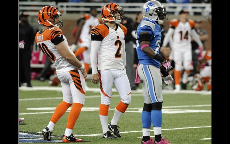Deportes | Gol de campo de Mike Nugent en los últimos segundos da triunfo sobre los Leones 27-24 Bengalíes ganan gracias a su pateador Gol de campo de Mike Nugent en los últimos segundos da triunfo sobre los Leones 27-24 Por: AP 20 de octubre de 2013 - 15:44 hs Mike Nugent (2) observa el viaje del balón para conseguir el gol de campo de la victoria de los Bengalíes. AP / DETROIT, MICHIGAN (20/OCT/2013).- Mike Nugent convirtió un gol de campo de 54 yardas cuando el tiempo se agotaba, para llevar el domingo a los Bengalíes de Cincinnati a una victoria por 27-24 sobre los Leones de Detroit. Los Bengalíes (5-2), líderes de la División Norte de la Conferencia Americana, ganaron por segunda semana consecutiva por el mismo marcador gracias al pie izquierdo de Nugent, quien convirtió otro gol de campo en tiempo de prórroga para que Cincinnati venciera a Buffalo en el partido anterior. Los Bengalíes dejaron escapar en aquel partido una ventaja de 14 puntos. Detroit (4-3) pareció realizar los méritos suficientes para que este partido se fuera también al alargue, pero el novato Sam Martin erró un despeje. El balón viajó apenas 28 yardas, hasta el medio campo, en el último minuto. Andy Dalton, quien lanzó tres pases de anotación, tomó ventaja con dos pases cortos para preparar el gol de campo que significó la victoria. Matthew Stafford, de Detroit, conectó con Calvin Johnson dos de sus tres pases de anotación. Temas NFL Futbol Americano Bengalíes de Cincinnati Leones de Detroit Recibe las últimas noticias en tu e-mail Todo lo que necesitas saber para comenzar tu día Registrarse implica aceptar los Términos y Condiciones