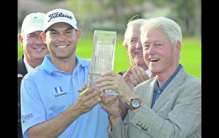 Deportes | El estadounidense se alzó como campeón al sumar en total 266 golpes Bill Haas se proclama vencedor en La Quinta En un final de fotografía, el estadounidense se alzó como campeón al sumar en total 266 golpes, 22 por debajo del par, a un impacto de los cinco clasificados en segundo lugar Por: EFE 26 de enero de 2015 - 02:22 hs El expresidente de los Estados Unidos, Bill Clinton (derecha), entrega a Bill Haas el trofeo de campeón del Humana Challenge. AP / LA QUINTA, ESTADOS UNIDOS (26/ENE/2015).- El Estadounidense Bill Haas se proclamó vencedor del torneo Humana Challenge de golf, tras disputarse la cuarta y definitiva ronda en La Quinta, California (Estados Unidos), y sumar en total 266 golpes, 22 por debajo del par, a un impacto de los cinco clasificados en segundo lugar. Haas firmó ayer una tarjeta de 67 golpes, con cuatro birdies, un eagle -en el hoyo 6- y un bogey, que le dieron una ajustada victoria, que estuvo muy disputada durante toda la jornada. El también estadounidense Charley Hoffman aumentó la emoción por el resultado definitivo al ofrecer una segunda parte del recorrido repleta de aciertos, con nada menos que seis birdies, que sumó a los dos que consiguió en los primeros hoyos. Completan el quinteto de segundos clasificados los estadounidenses Brendan Steele, Steve Wheatcroft y Matt Kuchar, y el surcoreano Sung Joon Park. El español Gonzalo Fernández-Castaño, que acabó en la posición 59 con un total de 278 impactos, estuvo ayer desconcentrado y fruto de ello anotó en su tarjeta un doble bogey (hoyo 6) y dos bogeys, que pudo contrarrestar con cinco birdies para acabar la jornada uno por debajo del par. En mejor posición que el madrileño quedó clasificado el argentino Fabián Gómez (30), que ayer totalizó 66 golpes -su mejor marca en el torneo- al conseguir 7 birdies y penalizar con un bogey. El tapatío Carlos Ortiz quedó eliminado el sábado del torneo. El Humana Challenge, incluido en el circuito de la PGA, repartió cinco millones 700 mil dólares en premios, más de un millón para el ganador, además de 500 puntos de la FedExCup. CLASIFICACIÓN GENERAL- Clasificación final: .1. Bill Haas (USA) 266 (67 63 69 67) (-22) golpes .2. Charley Hoffman (USA) 267 (71 63 69 64) .+. Brendan Steele (USA) 267 (67 68 68 64) .+. Sung Joon Park (COR) 267 (68 67 67 65) .+. Steve Wheatcroft (USA) 267 (65 67 68 67) .+. Matt Kuchar (USA) 267 (65 64 71 67) .7. Webb Simpson (USA) 268 (70 66 68 64) .+. Boo Weekley (USA) 268 (70 66 67 65) .+. Justin Thomas (USA) 268 (68 63 68 69) Temas Golf Torneos de Golf PGA Recibe las últimas noticias en tu e-mail Todo lo que necesitas saber para comenzar tu día Registrarse implica aceptar los Términos y Condiciones