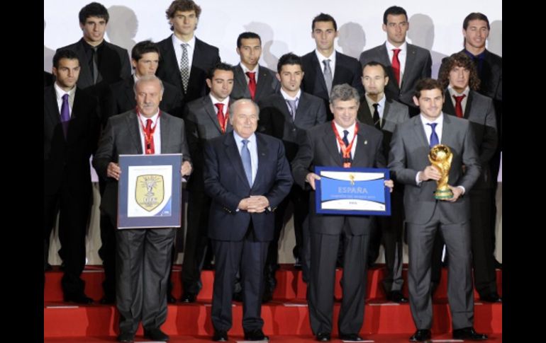 Deportes | El presidente de la FIFA rindió un homenaje a la Selección de España Blatter elogia una vez más a los campeones del mundo El presidente de la FIFA rindió un homenaje a la Selección de España Por: EFE 15 de noviembre de 2010 - 09:42 hs Joseph Blatter representó el reconocimiento del fútbol mundial a la Selección española. AFP / LAS ROZAS, MADRID (15/NOV/2010).- El presidente de la FIFA, Joseph Blatter, representó el reconocimiento del fútbol mundial a la Selección española con una reverencia ante los 23 jugadores que lograron el título en Sudáfrica 2010, durante un acto de homenaje al que se sumaron todos los internacionales de España desde 1940. Más de trescientos jugadores se congregaron en la Ciudad del Fútbol para participar en un emotivo encuentro que facilitó el saludo de los más jóvenes con aquellos que empezaron a escribir la historia del fútbol español, como Di Stefano, Suárez, Santamaría, Peiró, Eizaguirre y Santisteban. Sentados en la primera fila de un gigantesco escenario, donde la Copa del Mundo acaparaba focos y flashes, los más veteranos se sumaron al homenaje en el que se rememoraron una vez más los momentos cumbres de Sudáfrica 2010, el gol de Andrés Iniesta en la final frente a Holanda y la entrega de la Copa a Iker Casillas. Con emoción y agradecimiento y tras ser inmortalizados gráficamente en una imagen histórica, el seleccionador, Vicente del Bosque, y los campeones del mundo subieron uno a uno al escenario, donde el presidente de la FIFA, Joseph Blatter, saludó personalmente a todos y reiteró su respeto con una reverencia. Pepe Reina, Jesús Navas -con muletas-, David Silva, Javi Martínez, Fernando Llorente, Pedro Rodríguez, Álvaro Arbeloa, Sergio Busquets, Sergio Ramos, Xabi Alonso, Juan Mata, Víctor Valdés, Joan Capdevilla, Cesc Fábregas, Fernando Torres, Xavi Hernández, David Villa, Andrés Iniesta, Carles Puyol, Carlos Marchena, Gerard Piqué, Raúl Albiol, Iker Casillas y Del Bosque pusieron en pie a los presentes en medio de una enorme ovación. "Permitanme que a partir de ahora diga que tengo un equipo que es la selección española", dijo en castellano el presidente Blatter, tras destacar que España ganó el Mundial por jugar a ganar y entregar el diploma de campeón del mundo al presidente de la Federación Española, Ángel Villar, y un emblema a Del Bosque. Blatter, que animó durante su intervención a ovacionar a los campeones, recordó a éstos que la condición de campeón del mundo "es una responsabilidad porque el fútbol es parte de la sociedad", mientras Villar se comprometía a que España lucirá "con gallardía y nobleza" el emblema de campeón. Se echó de menos al ex capitán español Raúl González, el jugador que junto a David Villa más goles ha marcado para la selección, y al ahora técnico del Barcelona, Pep Guardiola, y a los que fueron campeones de Europa en 2008 Dani Güiza y Andrés Palop, lesionados. Paco Gento y Amancio Amaro tampoco acudieron a la cita, en la que se pudo ver un nuevo saludo entre Vicente del Bosque y Luis Aragonés, el técnico que abrió el camino de los títulos en la Eurocopa de Austria y Suiza en 2008. La 'Roja' presenta su nueva piel Los campeones del mundo aprovecharon el homenaje para hacer la presentación de su nueva piel la cual portarán en el Estadio da Luz cuando se midan ante Portugal en un duelo amistoso. La playera muestra en su derecha la estrella dorada que acredita la obtención del título en el pasado torneo mundialista, el cual se llevó en Sudáfrica y en el lado izquierdo tiene el emblema de la FIFA junto a la leyenda 'Fifa World Champions 20100' (Campeones del Mundo de la FIFA). Temas Futbol Internacional FIFA Joseph Blatter Selección de España Lee También Hamás dice que recibió garantías de que la guerra en Gaza terminó ¿Quiénes son las joyas del Tri Sub-17 para el Mundial de Qatar 2025? Todas las selecciones que han calificado al Mundial 2026 hasta hoy Argelia clasifica para el Mundial 2026 Recibe las últimas noticias en tu e-mail Todo lo que necesitas saber para comenzar tu día Registrarse implica aceptar los Términos y Condiciones