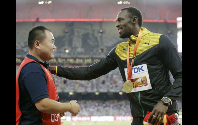 Deportes | El jamaicano recibe medalla de los 200 metros lisos conseguida en Mundial de Atletismo Bolt se reencuentra con hombre que lo arrolló El jamaicano recibe la medalla de los 200 metros lisos que logra en el Mundial de Atletismo Por: SUN 28 de agosto de 2015 - 13:58 hs CIUDAD DE MÉXICO (28/AGO/2015).- Usain Bolt se reencontró con el camarógrafo que lo arrolló este jueves cuando celebraba su oro mundial de los 200 metros en el estadio Nacional de Beijing. Tras la ceremonia donde el jamaicano recibió la medalla de oro de los 200 metros lisos, conseguida el jueves en el Campeonato del Mundo de Atletismo, que se celebra en el estadio “Nido del Pájaro”, Bolt recibió un regalo de Tao Song, el hombre que lo “atropelló” cuando grababa sobre un segway. El hecho fue captado en un video, el cual se viralizó en las redes sociales. Temas Atletismo Accidentes deportes Mundial de Atletismo Usain Bolt IAAF Lee También Cancelan autotrén que llevaría al Akron ¿Dónde ver EN VIVO la Serie Mundial Dodgers vs Blue Jays? Muere otra persona tras explosión de pipa en Iztapalapa; la cifra sube a 32 México vuelve a tener presencia en la Serie Mundial con un nuevo representante Recibe las últimas noticias en tu e-mail Todo lo que necesitas saber para comenzar tu día Registrarse implica aceptar los Términos y Condiciones