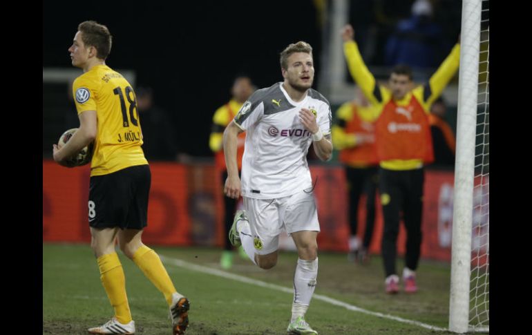 Deportes | Se mete a Cuartos de Final tras derrotar 2-0 al Dynamo Dresden Borussia Dortmund avanza en la Copa de Alemania Tras revivir en la Bundesliga con cuatro victorias consecutivas, el equipo de Jürgen Klopp se mete a Cuartos de Final del torneo Por: AFP 4 de marzo de 2015 - 04:26 hs El delantero italiano del Dortmund, Ciro Immobile (der.), se destapó con dos goles ante el Dynamo Dresden, de la Tercera División. AP / M. Sohn BERLÍN, ALEMANIA (04/MAR/2015).- Bayer Leverkusen, que ganó 2-0 en la prórroga al Kaiserslautern (Segunda División), y Borussia Dortmund, que venció por el mismo resultado al Dynamo Dresden (Tercera División), se clasificaron ayer para los Cuartos de Final de la Copa de Alemania. El Dortmund, del técnico Jürgen Klopp, protagonista en las últimas semanas de una gran remontada en la Bundesliga con cuatro victorias consecutivas que le han aupado de la última posición a la décima, tuvo problemas para eliminar al Dresden, un equipo histórico que ahora juega en Tercera División. Pero un error del equipo local fue aprovechado por el italiano Ciro Immobile para hacer el 1-0 (49’). Ya en la prolongación el antiguo delantero del Torino selló su doblete (89’). Más complicado lo tuvo el Leverkusen, cuarto en la Bundesliga, que sólo pudo batir al Kaiserlautern en la prolongación. Marcaron el turco Hakan Calhanoglu (101’) y Stefan Kiessling (112’). Además el Friburgo (17º) se impuso por 2-1 al Colonia (13º) con dos goles en dos minutos de la primera parte. En el 16’ marcó en propia puerta el nigeriano Anthony Ujah y uno más tarde el checo Vladimir Darida sentenció la eliminatoria. En la recta final el brasileño Deyverson (89’) acercó al Colonia, pero fue insuficiente. También logró el pase el Hoffenheim, protagonista de una gran temporada en el campeonato (7º). Ganó por 2-0 en terreno del Aalen (2ª) con tantos de Eugen Polanski (15) y Kevin Volland (55). El Bayern Munich, doble vigente campeón, recibe hoy al Brunswich (Segunda División). El entrenador español Pep Guardiola podría reservar jugadores con el objetivo de preparar mejor la vuelta de Octavos de Final de la Champions League contra el Shakhtar Donetsk, el 11 de marzo en el Allianz Arena, después de haber empatado sin goles en Ucrania. HOY EN TVBayern Múnich vs Brunswich 13:30 HORAS / tdn Temas Futbol Internacional Futbol Alemán Borussia Dortmund Bayer Leverkusen Lee También José Jerí asume como presidente de Perú Congreso de Perú destituye como presidenta a Dina Boluarte Premio Nobel de la Paz es para María Corina Machado, líder opositora de Venezuela Ulises Dávila se declara culpable por amaño de partidos; recibirá sentencia en diciembre Recibe las últimas noticias en tu e-mail Todo lo que necesitas saber para comenzar tu día Registrarse implica aceptar los Términos y Condiciones