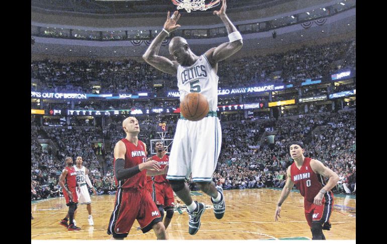 Deportes | Semifinal de la Conferencia del Este Boston saca el orgullo y derrota a Miami Kevin Garnett y Paul Pierce guían a los Celtics a ganar su primer partido de la serie ante el Heat Por: AP 8 de mayo de 2011 - 05:28 hs Kevin Garnett clava la pelota ante la tibia marca de Zydrunas Ilgauskas (izq.), de Miami. AP / BOSTON, ESTADOS UNIDOS (08/MAY/2011).- Rajon Rondo se mantuvo en el partido pese a dislocarse el codo izquierdo en el tercer cuarto, lo que inspiró a los Boston Celtics para vencer ayer 97-81 al visitante Miami Heat, en el tercer partido de los playoffs de la Conferencia Este de la NBA. Miami se mantiene con ventaja de 2-1 en la serie al mejor de siete encuentros, con el cuarto partido previsto para mañana, en la TD Garden Arena de Boston. Kevin Garnett tuvo uno de sus mejores desempeños en la postemporada al coleccionar 28 puntos y 18 rebotes, apoyado por Paul Pierce con 27 unidades y Ray Allen, con 15. Rondo, que cayó pesadamente en la cancha tras chocar con Dwyane Wade en el tercer cuarto, salió del partido ayudado por los asistentes de Boston. El base de los Celtics regresó al inicio del cuarto tramo, con el brazo izquierdo vendado, y con buenos pases y dos canastas seguidas le dio a Boston la chispa que necesitaba para quebrar el marcador. “Definitivamente es una sensación nueva, nunca había pasado por esto. Con el apoyo de los médicos y nuestros entrenadores, estoy seguro de que voy estar listo para el próximo partido”, manifestó el armador de Boston. Dwyane Wade, con 23 puntos y 7 asistencias, lideró a Miami, mientras el centro Joel Anthony salió de la banca para aportar 12 unidades y 11 rebotes, y el astro LeBron James se quedó en 15 cartones. Miami lideró la primera mitad del partido (46-44), pero los Celtics arrancaron con fuerza en el tercer cuarto, inspirados por una canasta de Rondo, su primera del partido. Shaquille O'Neal retornó con Boston tras una larga estancia en la lista de lesionados, pero en los ocho minutos que jugó no fue factor de peso y terminó con dos puntos solamente. Anotación por cuartos Periodo 1 2 3 4 Total Miami 21 25 15 20 81 Boston 27 17 28 25 97 Líderes anotadores Jugador Equipo Minutos jugados Puntos Asistencias Kevin Garnett Boston 37:47 28 1 Dwyane Wade Miami 40:03 23 7 Duelo en el Oeste Memphis toma ventaja 2-1 sobre OklahomaMEMPHIS.- Zach Randolph logró ayer 21 puntos y un récord de Memphis con 21 rebotes y los Grizzlies se recuperaron de una desventaja de 16 unidades para derrotar 101-93 en tiempo extra al Thunder de Oklahoma City y ponerse 2-1 arriba en su semifinal de la Conferencia Oeste. Memphis trata de hacer lo que ningún equipo de la NBA ha logrado: escalar desde el octavo puesto de la preclasificación hasta las finales de la Conferencia Oeste. Está a dos victorias de lograrlo tras permanecer invicto en casa en esta postemporada. Lo hizo con una espectacular remontada en un partido donde al inicio se vio fuera de sincronización y falto de práctica. Sin embargo, los Grizzlies anotaron los primeros seis puntos del tiempo agregado para concretar la victoria. Kevin Durant, líder de anotaciones en la Liga en la temporada regular y los playoffs, sólo intentó tres tiros en el tiempo extra y falló todos. Terminó con 22 puntos, su mínimo en esta postemporada, en la que tenía promedio de 31.6. O.J. Mayo aportó 18 puntos como suplente para Memphis, Mike Conley contribuyó con 18, el español Marc Gasol 16 y Tony Allen 10. El venezolano Greivis Vásquez logró dos puntos, dos asistencias y dos rebotes en casi seis minutos en cancha. Para el Thunder, Russell Westbrook consiguió 23 puntos y 12 asistencias pero perdió siete pelotas y salió por faltas al final del tiempo extra. Serge Ibaka terminó con 14 unidades y James Harden con 12. Oklahoma City ganaba 70-54 cuando restaban 3:53 minutos en el tercer cuarto y parecía estar en control de la situación. Pero Memphis borró la desventaja con un parcial de 13-2 y luego superó a Oklahoma City 23-10 en el cuarto período. En el tiempo extra, ganó 15-7. El Thunder conectó sólo tres de 12 tiros en la prórroga. Temas NBA Basquetbol Celtics de Boston Lee También Astros de Jalisco toma ventaja sobre Xalapa en la semifinal de zona Iván Déniz confía en la fortaleza colectiva de Astros de Jalisco para Semifinales de Zona Astros de Jalisco, con nueva mentalidad y la mira en el campeonato Los Astros de Jalisco brillan con luz propia Recibe las últimas noticias en tu e-mail Todo lo que necesitas saber para comenzar tu día Registrarse implica aceptar los Términos y Condiciones