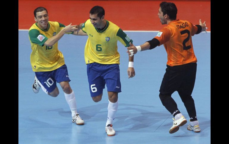 Deportes | La selección brasileña defenderá el título ante España Brasil se impone 3-1 a Colombia Brasil se adelantó a los 41 segundos de partido con un gol de Gabriel de fuerte Por: EFE 16 de noviembre de 2012 - 07:09 hs En la segunda parte, Brasil se adelantó de nuevo en el minuto 28 gracias otra vez a un tiro desde fuera del área de Gabriel. REUTERS / BANGKOK, TAILANDIA (16/NOV/2012).- La selección brasileña de fútbol sala defenderá el próximo domingo su título de campeona del mundo ante España después de imponerse a Colombia por 3-1 en la semifinal del Mundial disputada hoy en Bangkok. Brasil se adelantó a los 41 segundos de partido con un gol de Gabriel de fuerte tiro desde fuera del área, pero la buena actuación del portero rival, Juan Lozano, le impidió aumentar su ventaja y, a falta de menos de dos minutos para el descanso, Colombia consiguió el empate en un rápido contraataque por mediación de Jonathan Toro. En la segunda parte, Brasil se adelantó de nuevo en el minuto 28 gracias otra vez a un tiro desde fuera del área de Gabriel, y solo un minuto después puso el 3-1 definitivo en el marcador cuando el colombiano Toro desvió con la cabeza hacia su meta un disparo rival. En la otra semifinal jugada hoy, España ha derrotado 1-4 a Italia y se ha clasificado así para su quinta final consecutiva de un Mundial. Temas Futbol Internacional Selección de Brasil Selección de España Lee También Así se jugarán las Semifinales del Mundial Sub-20 El Tricolor entrenó en Guadalajara tras la humillación ante Colombia México Sub-20 regresa al país tras eliminación ante Argentina Selección Mexicana | James Rodríguez sobre el Tricolor: "Hablan mucho" Recibe las últimas noticias en tu e-mail Todo lo que necesitas saber para comenzar tu día Registrarse implica aceptar los Términos y Condiciones