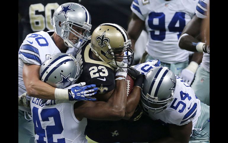 Deportes | Dallas cae 49-17 ante Nueva Orleans Brees y los Santos pulverizan a los Vaqueros Nueva Orleans arrolla a la defensiva de Dallas y gana el partido 49-17 Por: AP 11 de noviembre de 2013 - 04:50 hs El corredor de los Santos de Nueva Orleans, Pierre Thomas (23) es derribado por la defensiva de los Vaqueros de Dallas. AP / NUEVA ORLEANS, ESTADOS UNIDOS (11/NOV/2013).- Drew Brees completó 34 de 41 pases para 392 yardas y cuatro touchdowns, y los Santos de Nueva Orleans pulverizaron a la defensiva de los Vaqueros de Dallas, para imponerse por 49-17 el domingo por la noche. Los Santos (7-2) rompieron un récord de la NFL, al lograr 40 veces el primer down, e impusieron una marca de la franquicia, con 625 yardas totales. Brees lanzó pases de anotación a Kenny Stills, un avance de 52 yardas; Marques Colston en otra jugada de 22 yardas; el corredor Pierre Thomas, para una ganancia de una yarda, y otro running back, Darren Sproles, para un recorrido de 28 yardas, cuando restaban cinco segundos de la primera mitad. Sproles aportó también un acarreo de tres yardas para anotar, y Mark Ingram añadió un touchdown al llevar el balón cuatro yardas, en una noche en que acumuló 145, la máxima cifra de su carrera. DeMarco Murray sumó 89 yardas en la ofensiva terrestre de Dallas (5-5), incluidos 16 acarreos y un touchdown al comienzo del segundo cuarto. Los Vaqueros no volvieron a anotar sino hasta que Tony Romo envió un pase de 21 yardas a Terrance Williams, en el último minuto del tercer cuarto. Temas NFL Futbol Americano Vaqueros de Dallas Santos de Nueva Orleans Recibe las últimas noticias en tu e-mail Todo lo que necesitas saber para comenzar tu día Registrarse implica aceptar los Términos y Condiciones
