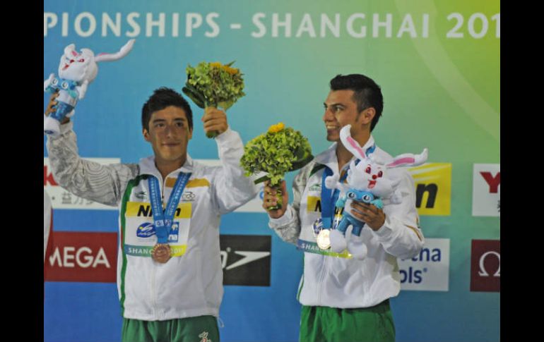 Deportes | Yahel Castillo y Julián Sánchez son terceros en trampolín sincronizado de 3 metros Bronce para México en el Mundial de natación Yahel Castillo y Julián Sánchez son terceros en trampolín sincronizado de 3 metros Por: AFP 19 de julio de 2011 - 05:25 hs Yahel Castillo (izq) y Julián Sanchez (der) celebrando el tercer lugar en tres metros sincronizados. AFP / SHANGHAI, CHINA (19/JUL/2011).- La pareja mexicana Yahel Castillo y Julián Sánchez se llevó la medalla de bronce en la prueba de clavados sincronizados desde plataforma de 3 metros, este martes en el Mundial 2011 de Shanghai, donde se impusieron en la prueba los chinos Qin Kai y Luo Yutong. El dúo chino, que ofreció el sexto título mundial del campeonato a su país, para mantener el ciento por ciento de éxito hasta ahora, ganó la prueba con 463.98 puntos. Los rusos Ilya Zakharov y Evgeny Kuznetsov conquistaron la medalla de plata. Tras una eliminatoria en la que terminaron sextos, los mexicanos dieron un salto de calidad para trepar hasta el último escalón del podio y regalar a su país el primer metal de la competición. Temas Clavados FINA Yahel Castillo Campeonato Mundial de Natación Recibe las últimas noticias en tu e-mail Todo lo que necesitas saber para comenzar tu día Registrarse implica aceptar los Términos y Condiciones