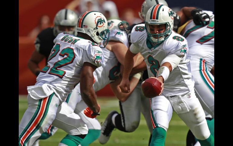 Deportes | Los Delfines vencen 34-14 a los Raiders en casa Bush impulsa a Miami Los Delfines vencen 34-14 a los Raiders en casa Por: AP 4 de diciembre de 2011 - 15:08 hs Reggie Bush (izq) fue el motor de la victoria de los Delfines este domingo. AP / MIAMI, FLORIDA (04/DIC/2011).- Reggie Bush corrió para 100 yardas y un touchdown el domingo y el antes deplorable equipo de los Delfines de Miami ganó por cuarta ocasión en los pasados cinco encuentros al batir 34-14 a los Raiders de Oakland. Matt Moore participó en dos anotaciones de Miami y Kevin Burnett regresó 34 yardas una intercepción para anotar. El resurgimiento de los Delfines (4-8) se da luego de haber perdido sus primeros siete encuentros. En los últimos cinco partidos han superado a sus oponentes 139-54, con una única derrota por un punto frente a Dallas el Día de Acción de Gracias. Para los Raiders (7-5), que iniciaron el día liderando la División Oeste de la Conferencia Americana, la paliza terminó con una racha de tres victorias. Cayeron a 6-25 en partidos de temporada regular en la costa este del país desde diciembre de 2002. Los Delfines sentenciaron el partido con 21 puntos en el tercer cuarto. Temas NFL Futbol Americano Delfines de Miami Raiders de Oakland Lee También Futbol hoy 12 de octubre de 2025: ¿Dónde ver los partidos en vivo? Nos quedamos con sensaciones cortas: Eduardo Arce Hay jugadores que no estuvieron a la altura: Javier Aguirre César Montes intenta justificar la goleada ante Colombia Recibe las últimas noticias en tu e-mail Todo lo que necesitas saber para comenzar tu día Registrarse implica aceptar los Términos y Condiciones