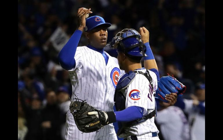 CHICAGO, ILLINOIS (30/OCT/2016).- Los Cachorros de Chicago, con un relevo semilargo del taponero cubano Aroldis Chapman, vencieron este domingo 3x2 a los Indios de Cleveland para manterse con vida en la Serie Mundial de 2016.Cuando casi estaban eliminados, los Cachorros enviaron ahora de regreso la Serie a Cleveland luego haberse acercado ahora 3-2.El sexto y penúltimo juego será el martes con los lanzadores Jake Arrieta, por los Cachorros, y Josh Timlin, por los Indios.Los Cachorros llegaron a la partido del domingo debajo 3-1 y tienen por delante una tarea ardua, ya que sólo los Piratas de Pittsburgh (1925 y 1979), los Yankees de Nueva York (1958), los Tigres de Detroit (1968) y los Reales de Kansas City (1985) se recuperaron de ese déficit para llevarse un 'Clasico de Otoño'.