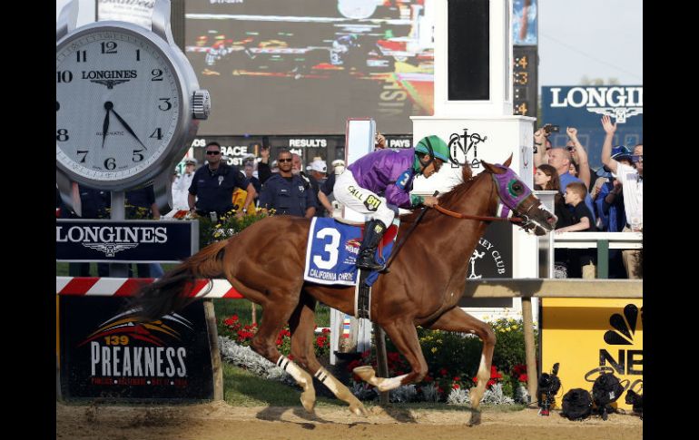 Deportes | El caballo montado por el mexicano Víctor Espinoza se lleva la segunda gema California Chrome gana el Preakness Stakes El caballo montado por el mexicano Víctor Espinoza se lleva la segunda gema Por: AP 17 de mayo de 2014 - 16:47 hs BALTIMORE, MARYLAND (17/MAY/2014).- California Chrome, montado por el jockey mexicano Víctor Espinoza, ganó el sábado la carrera Preakness y se perfiló para conquistar la Triple Corona, una proeza que ningún caballo consigue desde 1978. El potro castaño y patialbo, que ganó el Derby de Kentucky hace dos semanas, cumplió con los pronósticos que lo señalaban como amplio favorito al superar a Ride On Curlin cerca de la meta. Entrenado por Art Sherman, California Chrome terminó la carrera de una milla y tres dieciseisavos en un minuto, 58,84 segundos. Ride On Curlin llegó segundo y Social Inclusion fue tercero. Fue la primera victoria obtenida en Preakness por Sherman, de 77 años. California Chrome lleva seis carreras ganadas en forma consecutiva. Es el primer caballo criado en California que triunfa en Preakness desde que Snow Chief lo consiguió en 1986. De triunfar en Belmont el 7 de junio, California Chrome sería apenas el undécimo ganador de la Triple Corona en la historia. El último en conseguirla fue Affirmed hace 36 años. VEA EL VIDEO DE LA CARRERA Temas Hipismo Equitación Preakness Stakes Lee También Sociales: GNP Gran Premio Guadalajara, una muestra de emoción y destreza en el Country Club Andrés Azcárraga, eliminado en la final de Salto Ecuestre Individual Andrés Azcárraga disputará la final de Salto Ecuestre Individual México no participará en la final de salto ecuestre de París 2024 Recibe las últimas noticias en tu e-mail Todo lo que necesitas saber para comenzar tu día Registrarse implica aceptar los Términos y Condiciones