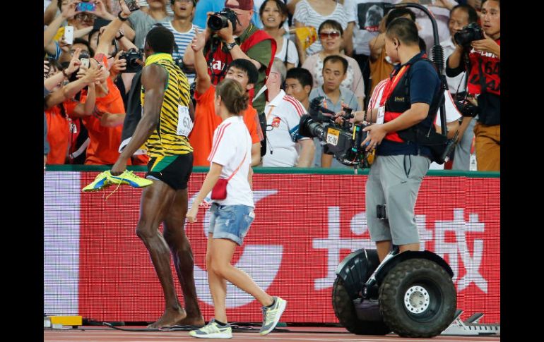 Deportes | El incidente ocurre cuando el atleta celebraba su triunfo en 200 metros Camarógrafo derriba a Usain Bolt El incidente ocurre cuando el atleta celebraba su triunfo en 200 metros Por: AFP 27 de agosto de 2015 - 08:43 hs BEIJING, CHINA (27/AGO/2015).- Cuando celebraba su nuevo título de campeón del mundo de 200 metros, el jamaicano Usain Bolt fue derribado por un camarógrafo que lo filmaba al borde de la pista. El choque, espectacular, hizo caer al sextuple campeón olímpico del esprint hacia atrás, de forma bastante violenta, como una entrada por detrás realizada por un futbolista. El clamor en el estadio estuvo a la medida de la sorpresa generada por la colisión. Pero Bolt se levantó finalmente unos instantes más tarde, interesándose por el camarógrafo, antes de seguir su vuelta de honor, sonriente. Bolt volverá a correr el sábado en el relevo 4x100 metros con Jamaica, que defiende el título. Temas Atletismo Accidentes deportes Mundial de Atletismo Usain Bolt IAAF Lee También Choque en Periférico a la altura de Valdepeñas produce congestión vehicular Dodgers y Blue Jays se enfrentarán en la Serie Mundial 2025 Avión de carga en Hong Kong derrapa sobre pista y cae al mar; mueren dos Bomberos atienden volcadura e incendio en Jardines del Bosque Recibe las últimas noticias en tu e-mail Todo lo que necesitas saber para comenzar tu día Registrarse implica aceptar los Términos y Condiciones