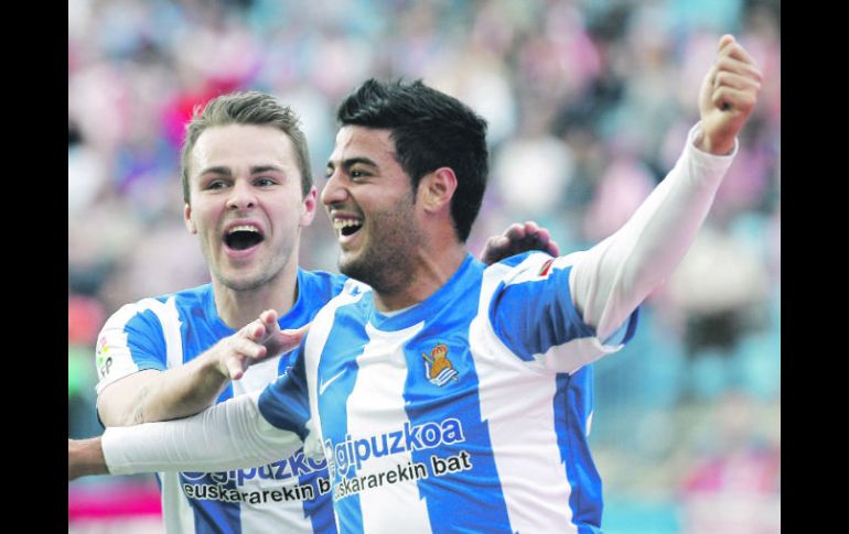 Deportes | Liga española. Barcelona remonta y vence en Sevilla Carlos Vela hace gol en el clásico vasco El mexicano colabora para que la Real Sociedad derrote de local 2-0 al Athletic Bilbao de Marcelo Bielsa, en el arranque de la sexta jornada Por: EL INFORMADOR 30 de septiembre de 2012 - 04:09 hs Carlos Vela lleva dos tantos en la temporada, ambos por la vía penal, por lo que se ha convertido en el tirador oficial del equipo. EFE / SAN SEBASTIÁN, ESPAÑA (30/SEP/2012).- La Real Sociedad con el aporte del atacante mexicano Carlos Vela, se quedó con el derbi vasco frente al Athletic de Bilbao, tras ganar 2-0 en la cancha de Anoeta, en juego de la fecha seis de la Liga de España. El cuadro Txuri Urdin, mostró mejor contundencia a la hora de atacar mientras los Leones de Marcelo Bielsa habían comenzado bien el choque, pero en el complemento dejaron de funcionar. Los dirigidos por el francés Philippe Montanier se adelantaron a los 62 minutos a través de Griezmann, con disparo de derecha, para el 1-0 parcial. Después entró de cambio el mexicano Vela al 69’ por Imanol Agirretxe y la táctica funcionó para los anfitriones ya que el quintanarroense se encargó de colocar el 2-0 definitivo al minuto 71 por la vía penal. Es el segundo tanto de Vela en lo que va de la temporada. La Real Sociedad llegó a nueve unidades en el sexto escalón, en tanto los pupilos de Bielsa se quedaron con cinco. Espectacular remontada Goles de Cesc Fábregas y David Villa en la agonía del partido rescataron para el Barcelona una victoria de 3-2 en su visita al Sevilla. El equipo catalán perdía 2-1 a falta de un minuto para el final del encuentro, pero Fábregas a los 89 minutos y luego Villa en los descuentos le dieron la vuelta al marcador. Cesc también anotó el primer tanto blaugrana al minuto 53. Barcelona sigue perfecto en el campeonato con seis victorias en las seis fechas disputadas y el ideal de 18 puntos. Con información de EFE / AFP PROGRAMACIÓNResultados y partidos Valencia 2-0 Zaragoza Málaga 4-0 Betis Real Sociedad 2-0 Athletic Sevilla 2-3 Barcelona Para hoy Granada vs. Celta 5:00 horas * Sky 506 Valladolid vs. Rayo 9:00 horas * Sky 506 Osasuna vs. Levante 11:00 horas * Sky 506 Real Madrid vs. Deportivo 12:50 horas * Sky 507 Espanyol vs. Atlético Madrid 14:30 horas * TDN/Sky 517 Temas Futbol Español Futbol Internacional Carlos Vela Lee También Gael García combate el miedo a través del cine Futbol hoy 18 de octubre de 2025: ¿Dónde ver los partidos en vivo? Olivia Harrison y la memoria de The Beatles Dónde ver EN VIVO Brewers vs Dodgers por el Juego 4 de la Serie de Campeonato LN 2025 Recibe las últimas noticias en tu e-mail Todo lo que necesitas saber para comenzar tu día Registrarse implica aceptar los Términos y Condiciones