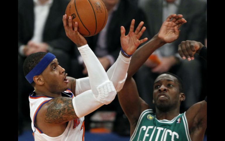 Deportes | Los Knicks de Nueva York derrotan 87-71 a los Celtics de Boston Carmelo guía a Knicks en triunfo sobre Boston Los Knicks de Nueva York derrotan 87-71 a los Celtics de Boston Por: AFP 23 de abril de 2013 - 21:32 hs NUEVA YORK, ESTADOS UNIDOS (23/ABR/2013).- El astro Carmelo Anthony guió este martes a los New York Knicks a vencer por 87-71 a los Boston Celtics y tomar ventaja de 2-0 en esta serie de la primera ronda de los playoffs en la Conferencia Este de la NBA. 'Melo' se desbordó con 34 puntos para su segundo encuentro en esta postemporada con más de 30 tantos anotados, ya que el sábado marcó 36 en la victoria de su equipo en el primer choque de esta serie. Otros canasteros destacados en el conjunto neoyorquino fueron J.R. Smith, ganador en esta temporada del premio 'mejor sexto hombre', que aportó al triunfo 19 puntos, y Raymond Felton, con 16 y siete capturas. El alero Paul Pierce terminó con 18 tantos, seis tablas y seis asistencias por los Celtics, que lideraron el primer tiempo por 48-42. El ala-pivot Kevin Garnett añadió 12 tantos y 11 balones capturados en la lucha rebotera en el quinteto perdedor. El tercer encuentro de esta serie -que se disputa al mejor de siete partidos- será el viernes en Boston. Temas NBA Basquetbol Celtics de Boston Recibe las últimas noticias en tu e-mail Todo lo que necesitas saber para comenzar tu día Registrarse implica aceptar los Términos y Condiciones