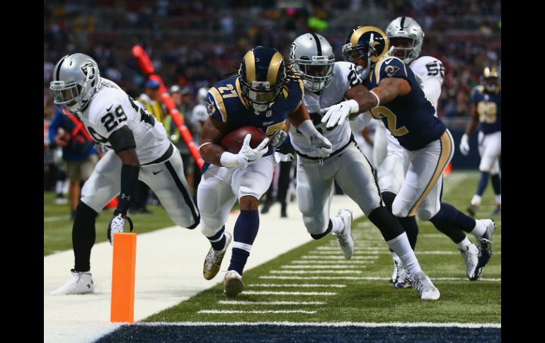 Deportes | El cuadro de San Luis toma una ventaja de 38 puntos en la primera mitad Carneros apabullan 52-0 a Raiders El cuadro de San Luis toma una ventaja de 38 puntos en la primera mitad Por: AP 30 de noviembre de 2014 - 16:45 hs Tre Mason suma 113 yardas mediante seis acarreos en el primer medio, incluida una jugada de 89 yardas que termina en las diagonales. AP / D. Vishwanat SAN LUIS, MISSOURI (30/NOV/2014).- Tre Mason realizó dos largos acarreos de anotación y Shaun Hill aportó tres touchdowns para que los Carneros de San Luis pulverizaran el domingo 52-0 a los Raiders de Oakland. De la nada, San Luis tomó una ventaja de 38 puntos en la primera mitad. Empató la segunda mayor cantidad de puntos logrados en dos cuartos en la historia de la franquicia. Mason sumó 113 yardas mediante seis acarreos en el primer medio, incluida una jugada de 89 yardas que terminó en las diagonales y otra de 35 en un pase pantalla que abrió el marcador. Hill completó 12 de 15 envíos para 178 yardas y dos anotaciones. Logró otro touchdown mediante un acarreo de dos yardas. Los Carneros (5-7) llegaron a la zona de anotación en sus primeras cinco posesiones y convirtieron un gol de campo en la sexta, a la mitad del segundo cuarto para superar su total de puntos en cualquier partido de esta campaña. La ventaja de 38 puntos que tenían en el intermedio fue la mayor en la historia de la franquicia, dos más que en un encuentro contra Green Bay en 1980. Los Raiders (1-11) nunca dieron pelea y regalaron cinco balones. Temas NFL Futbol Americano Raiders de Oakland Carneros de Los Ángeles Lee También La NFL suspende a Brian Branch por golpear a jugador de Chiefs NFL: Resultados del Monday Night Football Futbol hoy 14 de octubre de 2025: ¿Dónde ver los partidos en vivo? MLB: Resultados de las Series de Campeonato Recibe las últimas noticias en tu e-mail Todo lo que necesitas saber para comenzar tu día Registrarse implica aceptar los Términos y Condiciones
