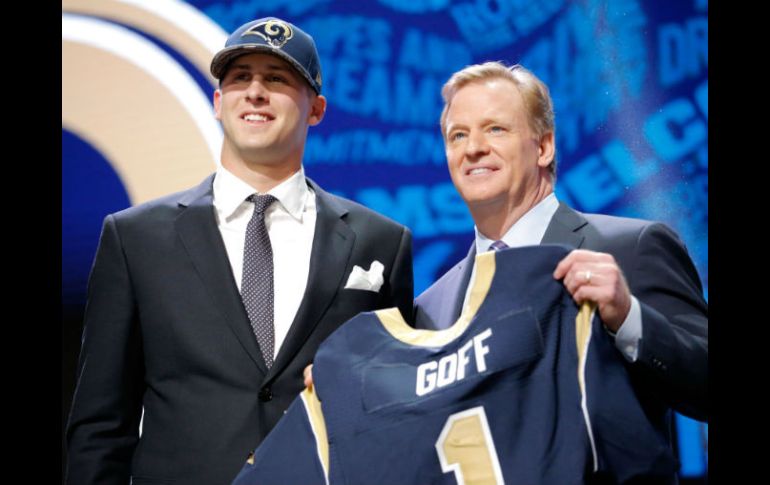 Deportes | El equipo realiza el primer pick global con el mariscal de campo Carneros elige a Jared Goff primero en Draft NFL El equipo realiza el primer pick global con el mariscal de campo Por: AP 28 de abril de 2016 - 19:03 hs El ex pasador de los Osos Dorados se convirtió en el segundo egresado de su universidad en ser reclutado en el primer turno. AFP / J. Durr CHICAGO, ILLINOIS (28/ABR/2016).- Los Carneros de Los Ángeles reclutaron al quarterback Jared Goff, de la Universidad de California, como la primera selección del draft de la NFL. Goff se convirtió en el segundo quarterback consecutivo que obtiene la posición de honor en el reclutamiento, y el 22do que lo consigue en la era moderna del draft desde 1967. Es también la primera selección de los Rams desde que anunciaron su mudanza de San Luis a Los Ángeles para la próxima campaña. Wentz fue el segundo reclutado, por las Águilas, luego de gozar de una exitosa carrera en North Dakota State, una universidad de segunda división. "Lo tomo como un honor y ahora debo demostrar que tomaron la decisión correcta", dijo Goff. No había muchas dudas sobre qué posiciones irían en la cima del draft luego de que Los Ángeles y Filadelfia concretaron grandes canjes para obtener las dos primeras selecciones. Fue el segundo año consecutivo en que se recluta a quarterbacks con las dos primeras selecciones y la séptima ocasión desde que comenzó la era moderna del draft en 1967. Tunsil, quien alguna vez fue candidato a la primera selección, cayó hasta la 13ra, reclutado por Miami, luego de que circuló en las redes sociales un video en el que aparentemente se aprecia al jugador fumando marihuana desde una máscara antigás con una pipa integrada. "Alguien 'hackeó' mi cuenta", dijo Tunsil. "Saben que cometí ese error hace muchos años. De alguna manera, alguien consiguió mis fotos y 'hackeó' mi cuenta de Twitter y de Instagram, es algo muy raro. No puedo controlar eso". Tunsil también admitió haber aceptado dinero de sus entrenadores en Mississippi. Los Cafés, que cedieron la segunda selección mediante un canje con las Águilas la semana pasada, volvieron a descender durante la ceremonia. Fue el primer gran canje de la noche, al intercambiar puestos con Tennessee. Luego Chicago adquirió el noveno puesto en un cambio con Tampa Bay. Los Titanes reclutaron al tackle ofensivo de Michigan State, Jack Conklin en el octavo puesto, antes de que los Osos seleccionaran a Leonard Floyd, lo que generó una pausa incómoda, pues el linebacker de Georgia no estuvo entre los asistentes al evento. Cleveland reclutó con la 15ta selección al wide receiver de Baylor, Corey Coleman. Luego de que los pasadores recibieron sus gorras e intercambiaron cumplidos con el comisionado Roger Goodell, aparecieron en el escenario dos astros de Ohio State. San Diego tomó al defensive end Joey Bosa, con la tercera selección, y Dallas reclutó al running back Ezekiel Elliott, inmediatamente después. El cornerback Eli Apple fue llamado por los Gigantes de Nueva York en la décima posición, la primera vez que tres jugadores de los Buckeyes son reclutados entre los 10 primeros. El tackle ofensivo Taylor Decker fue tomado por Detroit en el 16to puesto, mientras que el veloz linebacker, Darron Lee, incrementó a cinco el número de jugadores de Ohio State tras ser reclutado por los Jets de New York en el vigésimo sitio. "Por eso fuimos a Ohio State, para jugar en el siguiente nivel", dijo Bosa. Elliott, quien corrió para 1.878 yardas la campaña anterior, vistió un peculiar atuendo en el que descubrió su abdomen al desfilar por la alfombra roja previa al evento. Pero su camisa estaba en el lugar correcto una vez que escuchó a los Vaqueros decir su nombre. El cornerback de Florida State Jalen Ramsey, fue la quinta selección para Jacksonville, mientras que Baltimore tomó al tackle ofensivo de Notre Dame, Ronnie Stanley, en la sexta posición. Temas NFL Futbol Americano Draft Carneros de Los Ángeles Recibe las últimas noticias en tu e-mail Todo lo que necesitas saber para comenzar tu día Registrarse implica aceptar los Términos y Condiciones