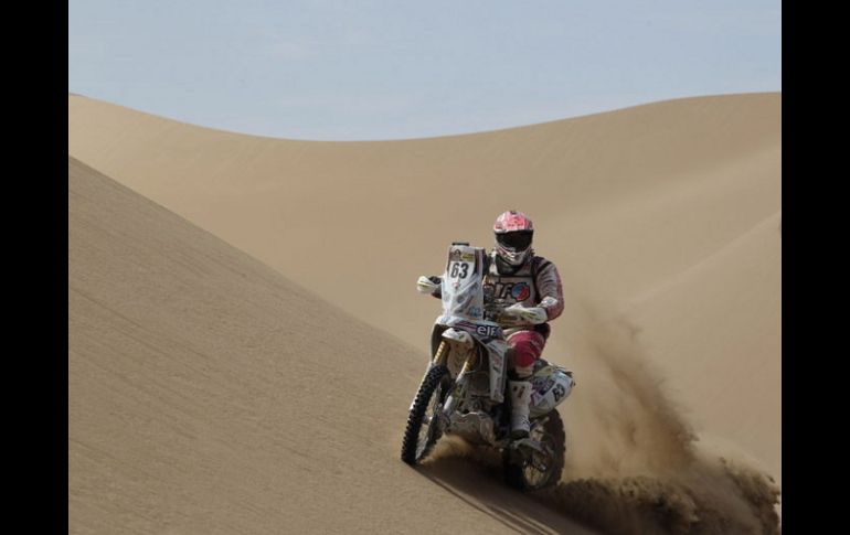Deportes | Francisco ''Chaleco'' López ya es segundo en la general Caselli gana la séptima etapa del Rally Dakar La etapa, entre la ciudad chilena de Calama y la argentina de Salta, tuvo 218 kilómetros de especial y un largo enlace para cruzar la cordillera de los Andes Por: EFE 11 de enero de 2013 - 09:02 hs Olivier Pain sigue como líder de la carrera. EFE / SALTA, ARGENTINA (11/ENE/2013).- El piloto estadounidense Kurt Caselli (KTM) ganó hoy la séptima etapa del Dakar por delante del chileno Francisco 'Chaleco' López (KTM), que avanzó hasta el segundo lugar en la clasificación general. El francés Olivier Pain (Yamaha) terminó tercero y sigue líder de la carrera, mientras que su compatriota Cyril Despres (KTM) cedió más de trece minutos y se vio relegado a la quinta posición en la general, a 14:07 del líder. La etapa, entre la ciudad chilena de Calama y la argentina de Salta, tuvo 218 kilómetros de especial y un largo enlace para cruzar la cordillera de los Andes. Clasificaciones motos 7ª etapa: 1. Kurt Caselli (USA/KTM) 01h.51:31 2. Francisco 'Chaleco' López (CHI/KTM) a 01:23 3. Olivier Pain (FRA/Yamaha) a 01:23 4. Frans Verhoeven (HOL/Yamaha) a 01:30 5. Ruben Faria (POR/KTM) a 02:30 6. Juan Pedrero (ESP/KTM) a 02:42 7. Jakub Przygonski (POL/KTM) a 02:51 8. David Casteu (FRA/Yamaha) a 03:12 9. Stefan Svitko (SVK/KTM) a 04:06 10. Alessandro Botturi (ITA/Husqvarna) a 04:39 General: 1. Olivier Pain (FRA/Yamaha) 17h.28:17 2. Francisco 'Chaleco' López (CHI/KTM) a 06:06 3. David Casteu (FRA/Yamaha) a 06:37 4. Ruben Faria (POR/KTM) a 09:42 5. Cyril Despres (FRA/KTM) a 14:07 6. Jakub Przygonski (POL/KTM) a 20:43 7. Stefan Svitko (SVK/KTM) a 24:51 8. Kurt Caselli (USA/KTM) a 27:46 9. Alessandro Botturi (ITA/Husqvarna) a 30:18 10. Jeremías Israel (CHI/Honda) a 30:35 Temas Automovilismo Rally Dakar Lee También Max Verstappen se lleva la pole para el Sprint del GP de Estados Unidos Norris domina en Austin, pero la sorpresa la da Hülkenberg Arranca el GP de Estados Unidos 2025 con formato Sprint ¿A qué hora es y dónde ver EN VIVO el GP de EU 2025 de F1? Recibe las últimas noticias en tu e-mail Todo lo que necesitas saber para comenzar tu día Registrarse implica aceptar los Términos y Condiciones