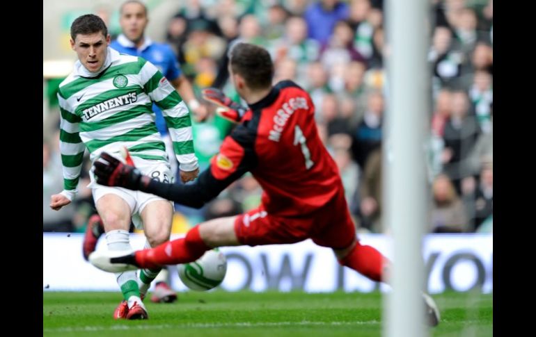 Deportes | Superó en el derbi de Glasgow a los Gers con tres goles Celtic gana al Rangers; avanza hacia el título Superó en el derbi de Glasgow a los Gers con tres goles Por: EFE 20 de febrero de 2011 - 11:09 hs Gary Hooper abonó con dos goles al triunfo del Celtic. REUTERS / GLASGOW, ESCOCIA (20/FEB/2011).- El Celtic dio un paso adelante hacia la conquista del título de la Liga de Escocia, tras superar en el derbi de Glasgow al Rangers (3-0), al que aventaja ahora en nueve puntos en la carrera por el éxito en el torneo. A la media hora el Celtic disponía ya una ventaja de dos goles marcados ambos por Gary Hooper. Uno, el primero, a centro de Kris Commons y otro, el segundo, a pase del hondureño Emilio Izaguirre. Kris Commons hizo el tercero en la segunda mitad. El Celtic pone tierra de por medio en el liderato. El Rangers, no obstante, tiene aún dos partidos pendientes de disputar. En el otro encuentro del domingo, el Hibernian ganó en el campo del Saint Mirren (0-1), gracias al tanto de Francis Dickoh a dos minutos del final. Temas Futbol Internacional Celtic Escocia Recibe las últimas noticias en tu e-mail Todo lo que necesitas saber para comenzar tu día Registrarse implica aceptar los Términos y Condiciones