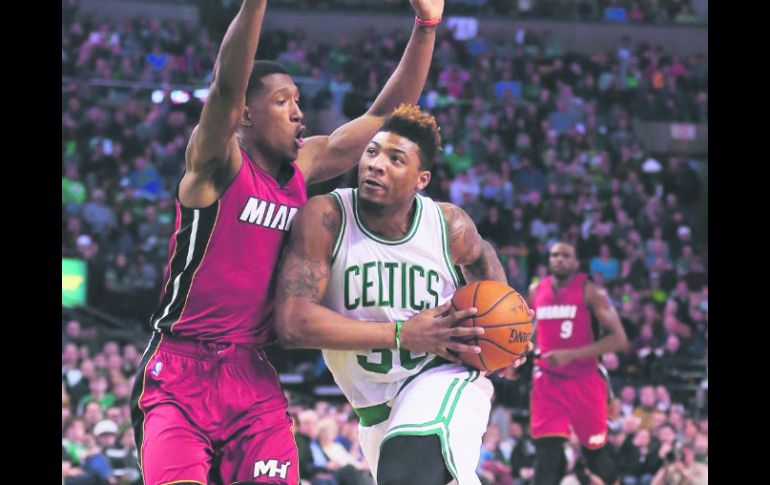 Deportes | NBA. Temporada 2015-2016 Celtics hila diez victorias seguidas en casa Marcus Smart anotó 15 puntos y recuperó seis rebotes para que Celtics de Boston se impusiera al Heat de Miami Por: AP 27 de febrero de 2016 - 23:53 hs Imparable. Marcus Smart (#36) de Celtics lleva el balón ante Josh Richardson de Heat. AFP / M. Meyer ESTADOS UNIDOS (28/FEB/2016).- Marcus Smart anotó 15 puntos y recuperó seis rebotes para que Celtics de Boston venciera 101-89 al Heat de Miami. Fue la décima victoria seguida de los Celtics como locales. Jae Crowder y Evan Turner añadieron 14 puntos cada uno. En total, seis jugadores de los Celtics acabaron con doble dígitos en anotación. Boston comenzó el último cuarto con una ventaja de apenas dos puntos, pero se despegó 93-84 con 2:45 por jugar. Goran Dragic lideró al Heat con 21 puntos, pero anotó en el cuarto periodo. Dwyane Wade añadió 19 puntos en la segunda derrota seguida del Heat. Joe Johnson firma con Miami El mensaje de Dwyane Wade convenció a Joe Johnson. Y ahora el Heat de Miami cuenta con francotirador con miras a los playoffs. Miami sumó a otro jugador de credenciales de fuste al adquirir ayer a Johnson, una vez que el escolta completó la rescisión de su contrato con los Nets de Brooklyn. Johnson estaba en la mira de otros rivales, como los Cavaliers de Cleveland y los Hawks de Atlanta, su ex equipo. Pero no perdió tiempo en inclinarse por Miami. Temas NBA Basquetbol Celtics de Boston Miami Heat Lee También Astros de Jalisco doblega a Xalapa y se pone a un juego de la Final de Zona Billie Eilish fue agredida por fan en pleno concierto en Miami Astros de Jalisco toma ventaja sobre Xalapa en la semifinal de zona Iván Déniz confía en la fortaleza colectiva de Astros de Jalisco para Semifinales de Zona Recibe las últimas noticias en tu e-mail Todo lo que necesitas saber para comenzar tu día Registrarse implica aceptar los Términos y Condiciones