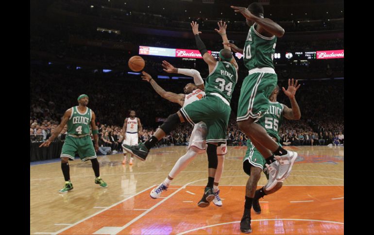 Deportes | Boston vence a Knicks 92-86 y pone 3-2 la serie en contra Celtics obligan a sexto partido Boston vence a Knicks 92-86 y pone 3-2 la serie en contra Por: AP 1 de mayo de 2013 - 21:26 hs Acción del quinto duelo de la serie entre Knicks y Celtics. AP / NUEVA YORK, N.Y. (01/MAY/2013).- Prendidos en la serie y rumbo a Boston para un sexto partido. Los Celtics de Boston, el equipo más laureado de la NBA, están a dos de victorias de escribir otra página histórica. Con 16 puntos y 18 rebotes de un grandioso Kevin Garnett, los Celtics se mantuvieran con vida en los playoffs de la NBA, al acortar a 3-2 la ventaja de los Knicks en la serie con una victoria el miércoles por 92-86 en Nueva York. Los Celtics recibirán en casa a los Knicks para el sexto partido del viernes. Necesitan dos triunfos para convertirse en el primer equipo de la NBA en sobreponerse de una desventaja de 3-0 para ganar una serie. Jeff Green anotó 18 puntos, Brandon Bass coló 17 y Paul Pierce agregó 16, ayudando a Boston a recuperarse de un inicio de partido de 11-0 en contra y tomar una amplia ventaja en la segunda mitad. "No entramos en pánico y eso era algo que habíamos hecho antes, pero esta vez", dijo el técnico Doc Rivers. "Calculaba que una vez nos pudiéramos acercar a cinco o puntos, el equipo iba a estar bien". J.R. Smith, de regreso tras una suspensión de un juego por propinar un codazo a Jason Terry en un tercer partido que los Knicks tenían más que controlado, falló sus primeros 10 tiros de campo y terminó acertando de 14-3 para aportar sólo 14 puntos. Terry, un suplente, anotó 17 puntos Con el resultado, los Celtics impiden una vez más que Nueva York gane una serie de postemporada por primera ocasión desde 2000. "Creo que estamos bien", dijo el entrenador de los Knicks Mike Woodson. "Claro que nos hubiese gustado sentenciar esto y seguir con lo próximo, pero nadie dijo que iba a ser fácil". Los Celtics fueron el primero de ocho equipos en la NBA que remontaron un 3-1 en contra, al vencer a Filadelfia en 1968. Ahora estarían en condiciones de ser los primeros que voltean un 3-0. Carmelo Anthony anotó 22 puntos para los Knicks, pero estuvo poco certero: coló sólo ocho de sus 24 tiros al aro. Los Knicks tendrán que hacer otro viaje a Boston, lo que menos deseaban al considerar la veteranía de su plantel. El miércoles, los jugadores de los Knicks ingresaron al Madison Square Garden vestidos de negro, como si fueran al "funeral" de los Celtics. Mejor que se olviden del sepelio. Los Celtics están más vivos que nunca. Temas NBA Basquetbol Celtics de Boston Lee También Astros de Jalisco toma ventaja sobre Xalapa en la semifinal de zona Iván Déniz confía en la fortaleza colectiva de Astros de Jalisco para Semifinales de Zona Astros de Jalisco, con nueva mentalidad y la mira en el campeonato Los Astros de Jalisco brillan con luz propia Recibe las últimas noticias en tu e-mail Todo lo que necesitas saber para comenzar tu día Registrarse implica aceptar los Términos y Condiciones