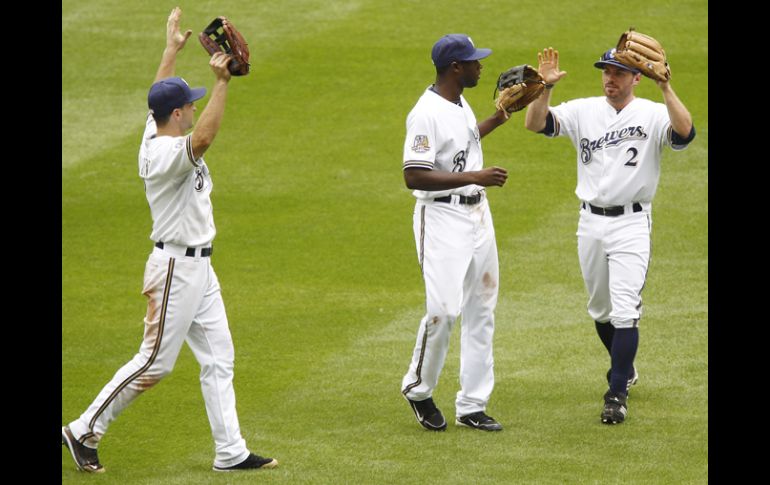 Deportes | El juego finalizó 11-6 con victoria para el mexicano Yovani Gallardo Cerveceros 'barren' a los Astros Casey McGehee impulsó tres carreras con un jonrón con lo que sirvió a su equipo a vencer categóricamente a los de Houston Por: EFE 8 de agosto de 2010 - 19:24 hs Ryan Braun (izq), Lorenzo Cain y Joe Inglett festejan la victoria en contra de los Astros. AP / MILWAUKEE, ESTADOS UNIDOS (08/AGO/2010).- El antesalista Casey McGehee pegó jonrón de tres carreras y ayudó a los Cerveceros de Milwaukee a conseguir un triunfo por 11-6 sobre los Astros de Houston. McGehee (16) se voló la barda en el cuarto episodio llevando a dos corredores en el camino, cuando había sólo un out en esa entrada. Si McGehee conectó de vuelta entera, el guardabosques Lorenzo Cain remolcó las primeras tres anotaciones en su carrera, para ayudar a que los Cerveceros completaran "barrida" en la serie de tres ante el equipo tejano. Entre la batería latinoamericana el parador en corto venezolano Alcides Escobar se fue de 4-2 con anotada y remolcada. La victoria fue para el abridor mexicano Yovani Gallardo (11-5) en seis episodios, permitió ocho imparables, cuatro carreras, dio una base y retiró a siete por la vía del ponche. Gallardo enfrentó a 27 enemigos, y los controló con 106 envíos, de los cuales 73 fueron a la zona del strike, para dejar en 2.86 su promedio de efectividad. La derrota la cargó el abridor Wesley Wright (1-2) en dos episodios y un tercio, permitió cinco imparables, siete carreras, dio cuatro bases y retiró a uno por ponche. Por los Astros el parador puertorriqueño Angel Sánchez, de 5-1 con anotada; el guardabosques panameño Carlos Lee, de 3-2 con dos remolcadas; el bateador emergente dominicano Pedro Feliz, de 1-0. Temas Beisbol MLB Astros de Houston Cerveceros de Milwaukee Lee También EN VIVO | Dodgers vs Brewers: Juego 4 Serie de Campeonato LN 2025 HOY Dónde ver EN VIVO los juegos de MLB, HOY 17 de octubre Dodgers, a punto de turrón Los Azulejos emparejan la final de la Liga Americana Recibe las últimas noticias en tu e-mail Todo lo que necesitas saber para comenzar tu día Registrarse implica aceptar los Términos y Condiciones