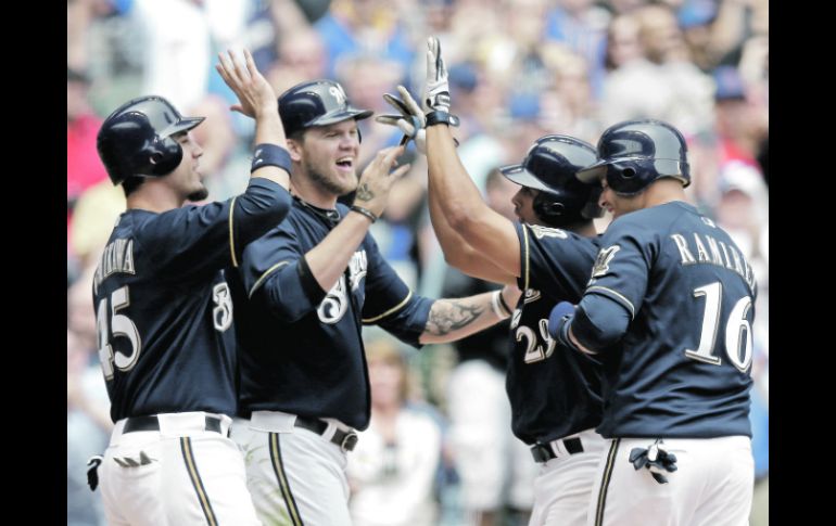 Deportes | Edwin Maysonet conecta jonrón con las bases llenas Cerveceros brindan con todo y Grand Slam Edwin Maysonet conecta jonrón con las bases llenas Por: AP 13 de mayo de 2012 - 05:45 hs Edwin Maysonet (29) es felicitado por Travis Ishikawa (45), Corey Hart, y Aramis Ramírez (16). AP / MILWAUKEE, ESTADOS UNIDOS (13/MAY/2012).- Con las bases llenas, los cuadrangulares producen más sonrisas a los aficionados. El puertorriqueño Edwin Maysonet conectó el primer jonrón con casa llena de su carrera, mientras que Shaun Marcum lanzó siete buenas entradas para llevar el sábado a los Cerveceros de Milwaukee a una victoria 8-2 ante los Cachorros de Chicago. Fue el segundo triunfo consecutivo para los Cerveceros, que vencieron a los Cachorros el viernes en 13 entradas. Fue un partido de cinco horas que terminó poco después de medianoche. El duelo del sábado comenzó al mediodía porque se televisó a nivel nacional en Estados Unidos. Maysonet disparó su Grand Slam en la sexta entrada ante Chris Volstad, un batazo que terminó en el segundo nivel de las tribunas del jardín derecho. Fue su primer jonrón de la campaña y segundo de su carrera. Su primer jonrón fue con Houston en mayo de 2009 al enfrentar a Pittsburgh. Al puertorriqueño le tocó ser titular debido a que al segundo base Rickie Weeks le dieron descanso por una dolencia en la muñeca. Marcum (2-1) permitió sólo una carrera y tres imparables y ponchó a seis. Después de conceder una carrera en la primera entrada no dejó a ningún corredor pasar de segunda y retiró a 10 de los últimos 11 que enfrentó. Volstad (0-5) lanzó seis entradas para los Cachorros y permitió seis carreras y nueve imparables. Fue la decimoctava apertura de Volstad sin registrar una victoria. Su último triunfo fue el 17 de julio de 2011 con Florida. Por los Cachorros, los dominicanos Starlin Castro de 4-0 y Alfonso Soriano de 3-0. El puertorriqueño Geovany Soto de 4-0. Por los Cerveceros, el puertorriqueño Maysonet de 3-2, con una anotada y cuatro impulsadas. El dominicano Aramis Ramírez de 4-1, una anotada y una remolcada. El venezolano César Izturis de 4-1, una anotada. Temas Beisbol Cerveceros de Milwaukee Recibe las últimas noticias en tu e-mail Todo lo que necesitas saber para comenzar tu día Registrarse implica aceptar los Términos y Condiciones