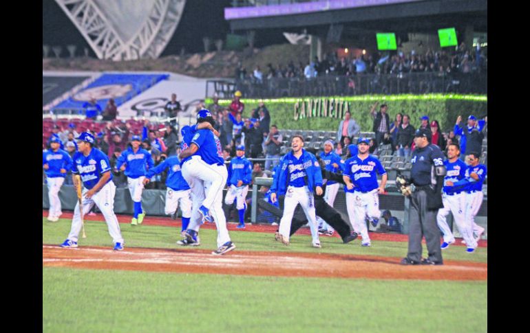 GUADALAJARA, JALISCO (26/NOV/2016).- Charros encendió sus cañones a la hora buena y volvió a dejar tendidos en el terreno a los Venados de Mazatlán, a los que les remontó una desventaja de 0-6, para terminar ganando 8-7 ante el delirio de los más de nueve mil aficionados que se dieron cita en el Estadio de los Bigotones.Con la victoria, los Charros se llevan su primera serie de la segunda vuelta y hoy pueden completar la limpia sobre los Venados.Marco Tovar regresó a la loma de las responsabilidades en casa, pero el de Tijuana lució débil y descontrolado, por lo que el desenlace de la noche para el lanzador de Charros era más que predecible.Así, la visita le encontró rápido la pelota a Marco y desde la primera entrada Venados le hizo cuatro carreras, con el aporte estelar de Yunesky Sánchez, que le depositó la pelota en el estacionamiento con dos a bordo.El ataque de Venados mantuvo el castigo sobre Tovar en la parte alta del segundo rollo y le hicieron dos carreras más, por lo que la grúa se llevó a Marco sin poder completar dos entradas.A partir de ahí, ya con Manuel Flores en el centro del diamante, Jalisco construyó su regreso en el partido.En la parte baja del tercer episodio Charros acortó distancias de la mano de dos de sus baluartes.Primero, Amadeo Zazueta remolcó a Alberto Carreón con sencillo para abrir la pizarra por los locales.Enseguida, el “Manny” Rodríguez depositó la esférica detrás de la barda con un tablazo salvaje por todo el jardín derecho, con Zazueta y el “Mosco” a bordo para el 4-6.Dos carreras parecían tarea fácil para regresar al juego, pero lejos de acercar a su gente a zona prometida, Charros cometió un pifia en la alta de la sexta cuando Arthur Charles malabareó una pelota con la que sacaba el tercer octubre a cambio llegó la séptima para los mazatlecos.En la parte baja de la séptima Charros dejó hombres en segunda y tercera y en la octava no pasó nada con los cañones azules.En la novena, sin embargo, se encendieron los toletes de los de casa, con un ataque constante sobre el pitcheo de Mazatlán. Como una noche antes, Japhet Amador impulsó la del empate con un roletazo de botes salvajes que provocó un fuerte choque en las paradas cortas de Venados.Después, con la casa llena, Agustín Murillo conectó fly al jardín central, no muy profundo. Zazueta se subió a la motocicleta y entró sin vacilar a home para decretar el triunfo de los Charros.